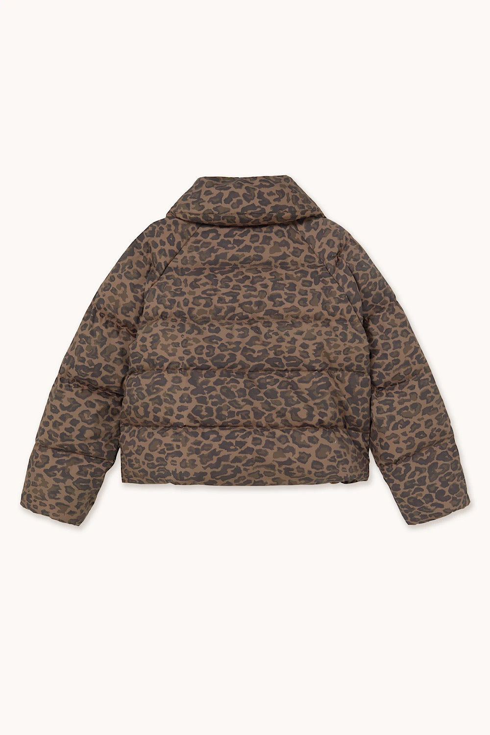 Confeccionada en algodón premium con un estampado animal sobre una base color moka, esta chaqueta presenta cuello redondo, cierre de botones a presión, bolsillos de ojal forrados en borreguito y un bolsillo interior de ojal. Acolchada con relleno de plumas para mayor abrigo y acabada con un tratamiento repelente al agua, ofrece una silueta abrigada y sofisticada que combina confort con un estilo moderno.