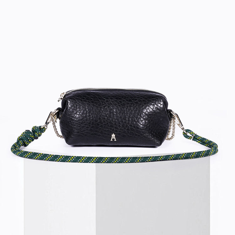 Confeccionado en piel de cordero naturalmente burbujeada, ofrece un aspecto a la vez sobrio y atrevido. Su textura suave, forrada con algodón orgánico, lo convierte en un accesorio cómodo y práctico para el día a día.
