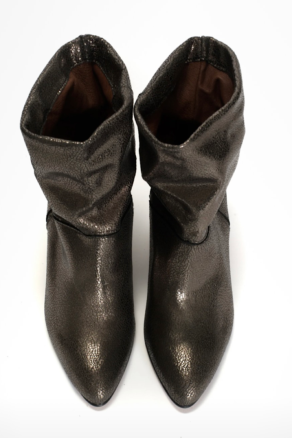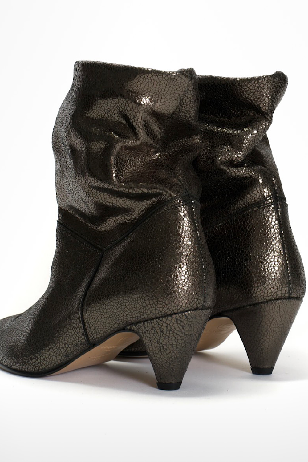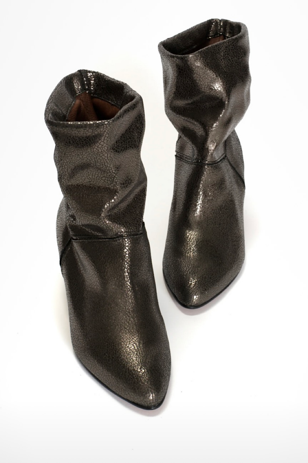 La versión de vuestros botines favoritos pero en color antracita metalizada. La mayoría de vosotras ya los tenéis en dorado y estamos seguras que os van a encantar en este nuevo color. Un fondo de armario total. 100% piel.
