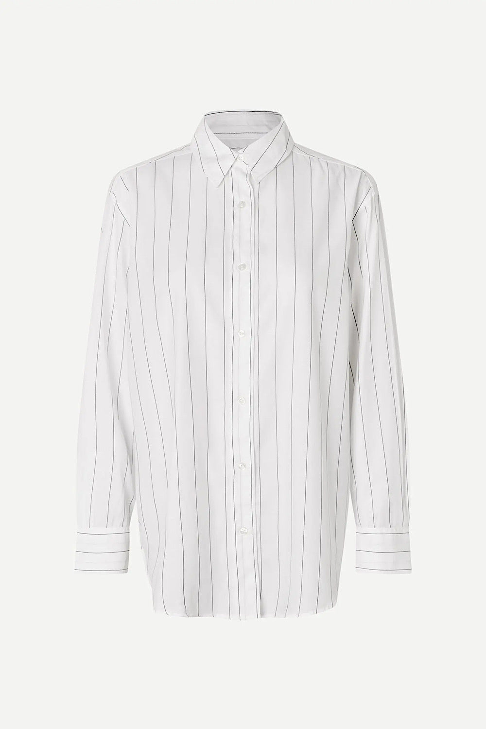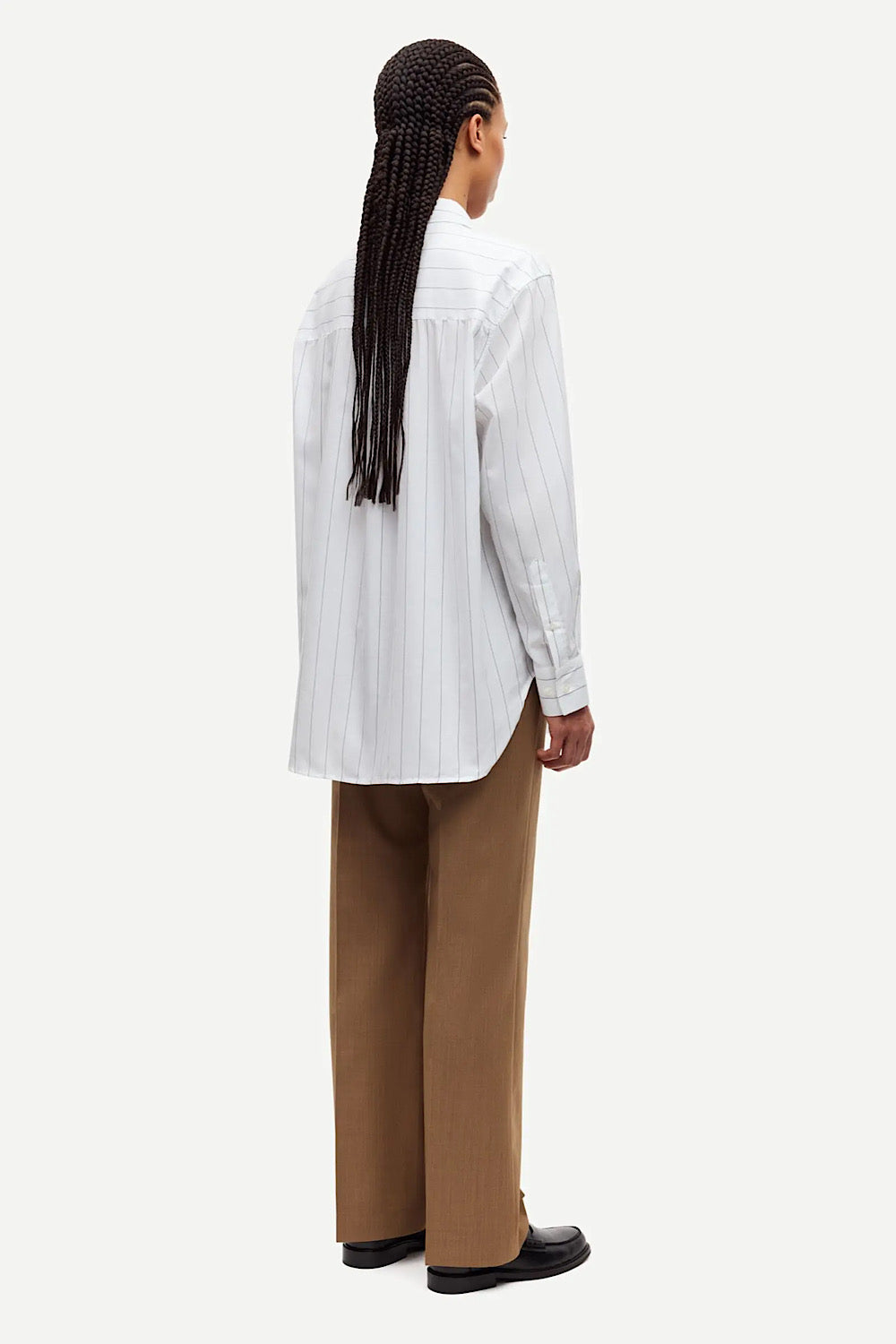 Nos encantan las camisas masculinas y este modelo con detalle de raya diplomática que le da un toque muy sofisticado. Es oversize. Su combinación de algodón y viscosa la hacen súper confortable para ir cómoda en el día a día.