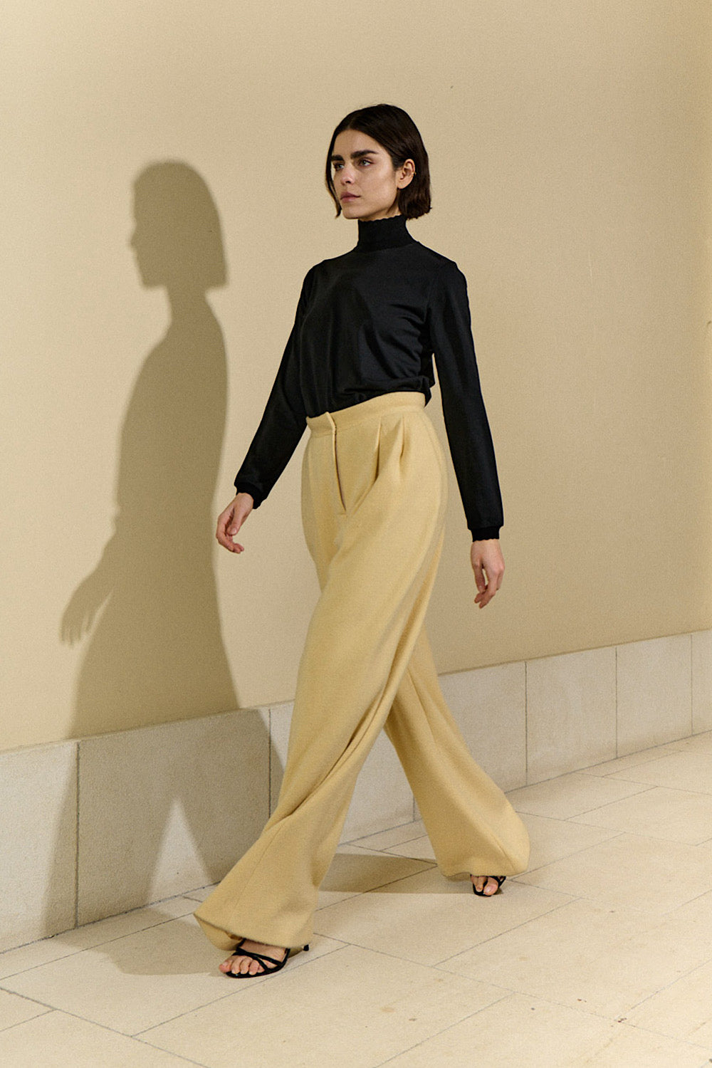 Camiseta de manga larga con cuello alto y detalle de puños de punto con pequeños calados y también en el cuello. Muy suave y confortable.