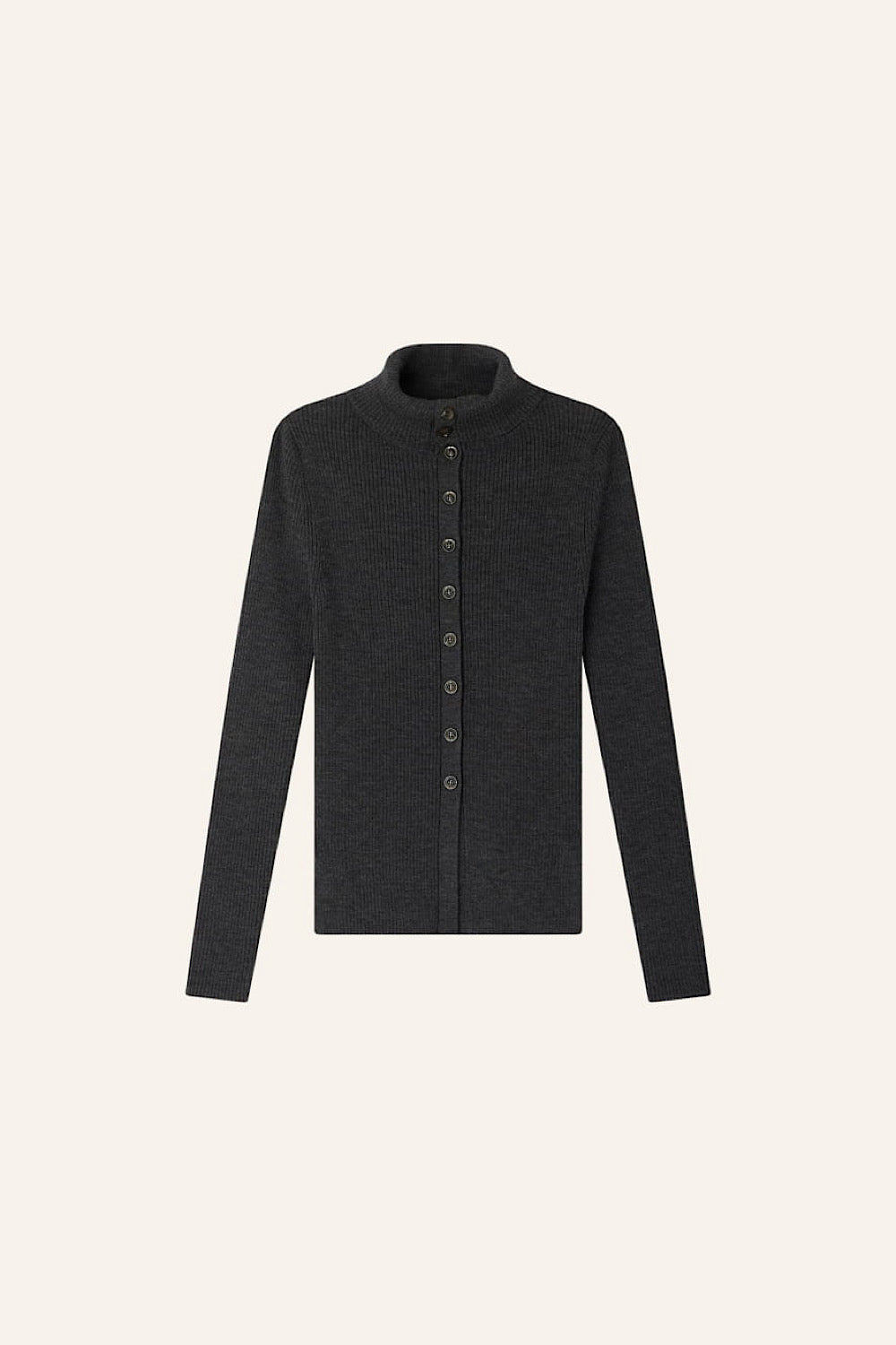 Jersey tipo cardigan ajustado, con detalle de botones y cuello subido que puedes dejar más abierto abriendo los botones. Una prenda con mucho estilo.