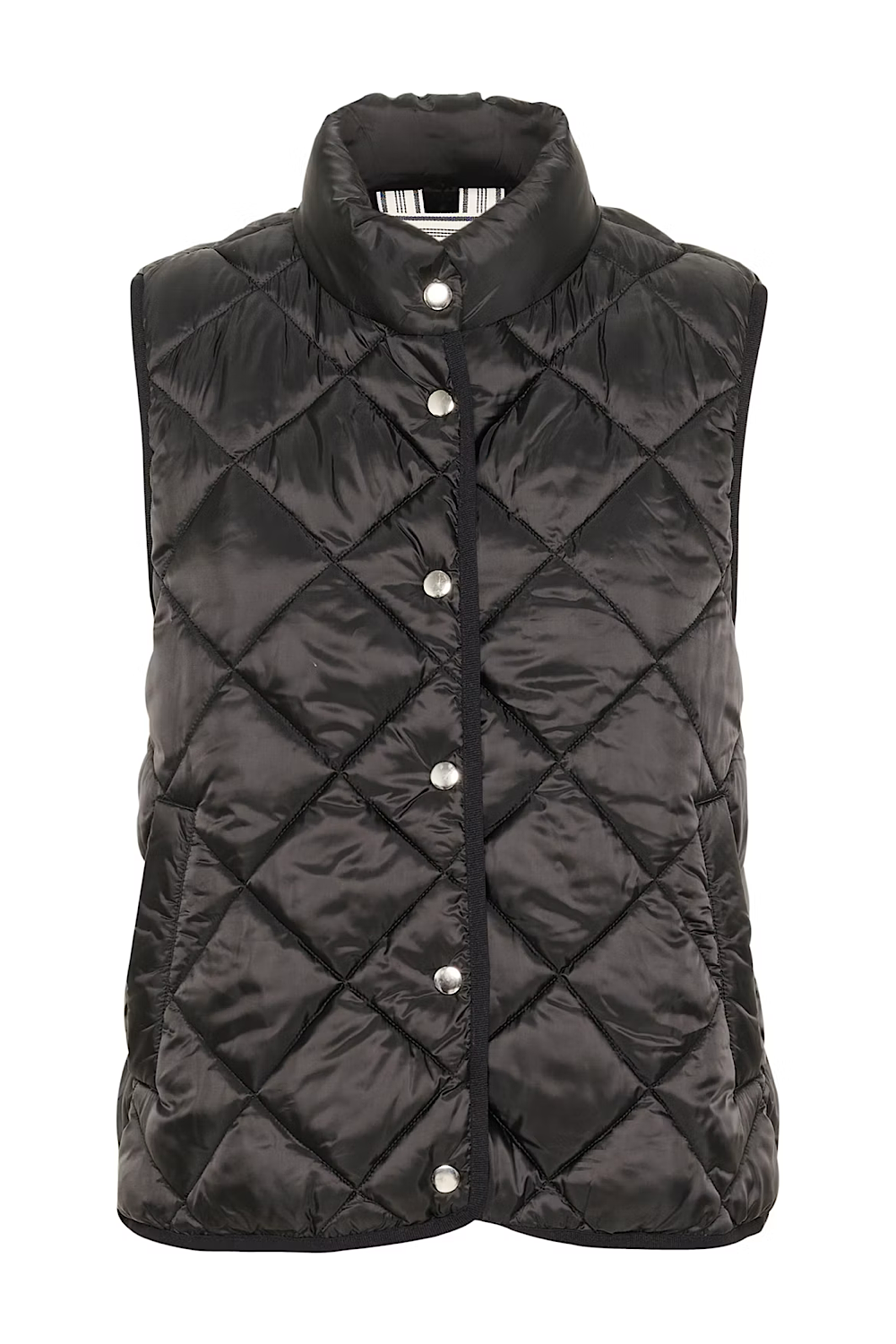 Chaleco en tejido acolchado, súper ligero y muy cómodo. En color negro para que sea un fondo de armario perfecto para tu día a día.