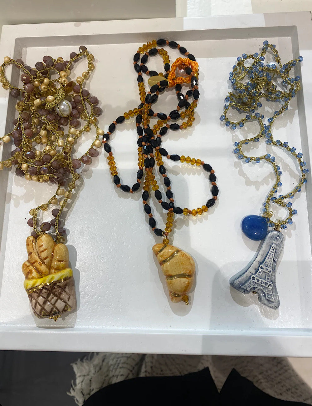 Puede haber pequeñas variaciones en la longitud o pintura ya que cada collar está hecho a mano, pequeñas imperfecciones hacen que cada uno sea perfecto y único.
