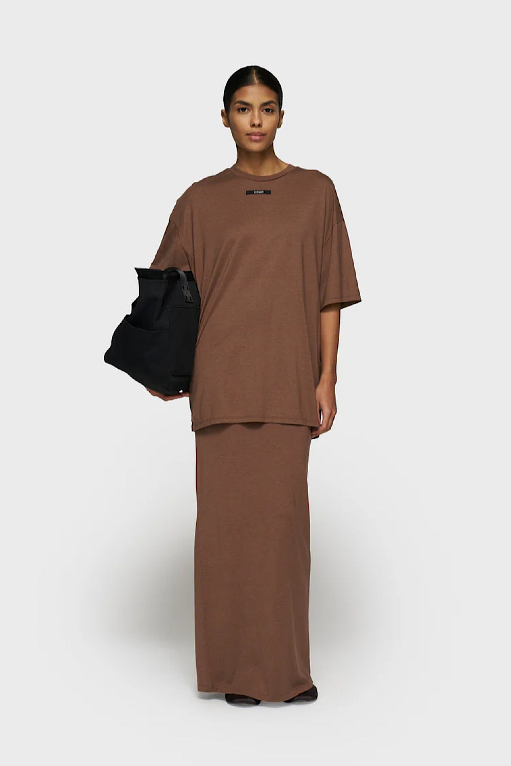Una falda ideal, cómoda y con estilo. Lleva goma en la cintura y pequeña abertura en la parte de atrás. Si quieres un total look ideal y muy sofisticado elige también la camiseta Truffle Oversize. También disponible en color negro.