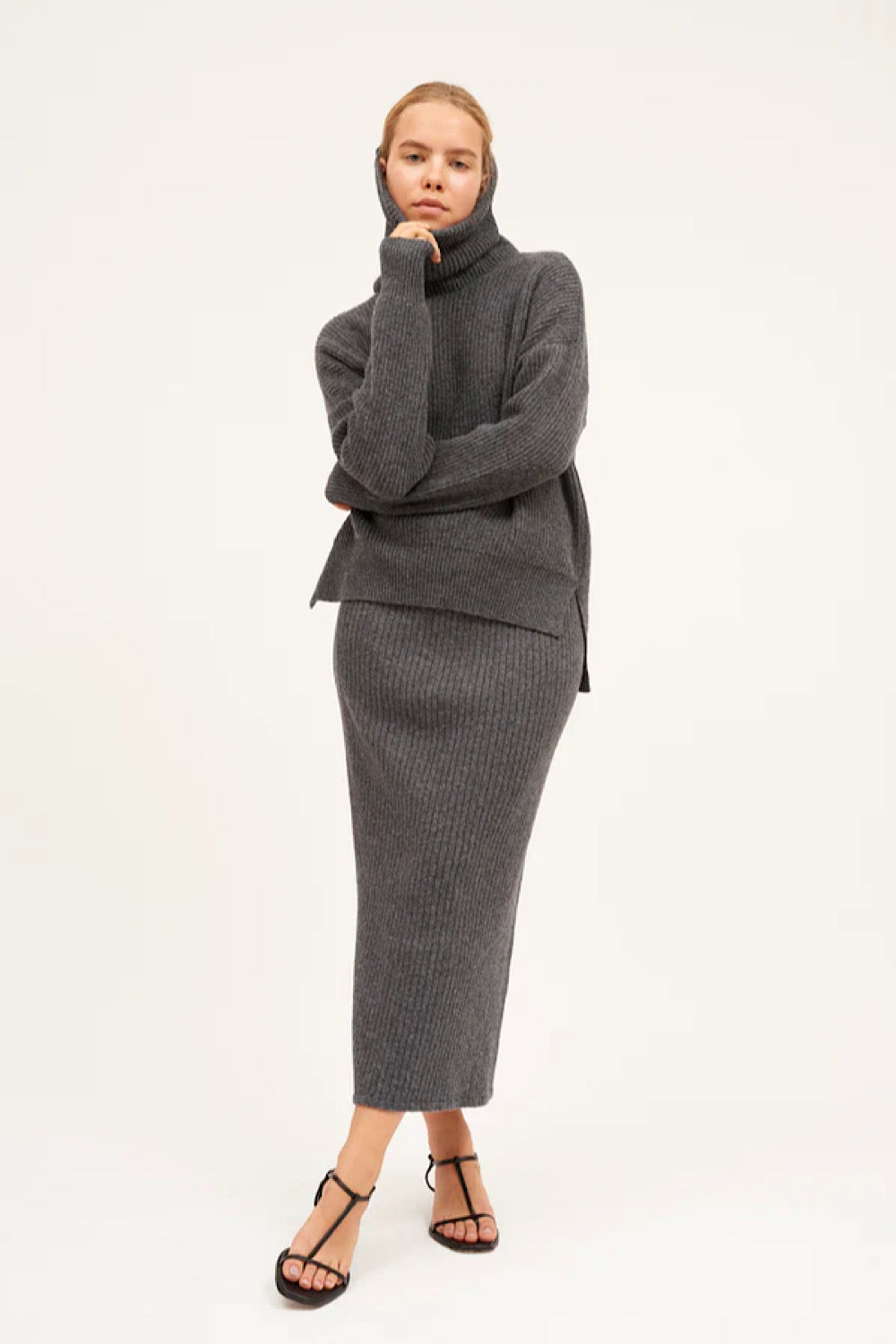 La falda de punto Milita de Zubi está diseñada en punto inglés. Su corte acompaña a la forma de tu cuerpo y la hace extremadamente cómoda. Tiene una abertura a la altura de la rodilla y su cinturilla es elástica. Gracias a su composición recupera su forma original después de cada uso. Recomendamos que la lleves con su jersey Roller a juego.