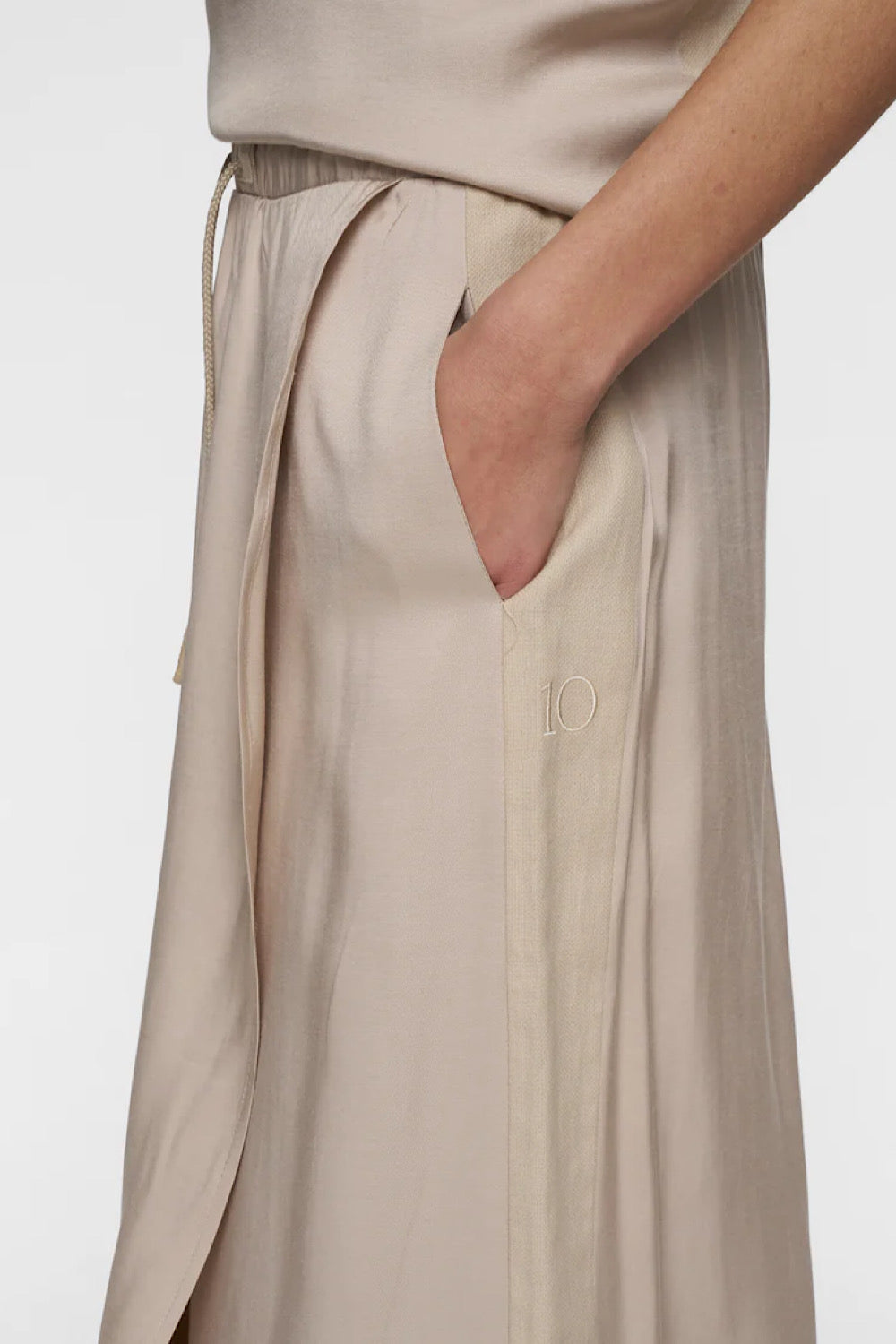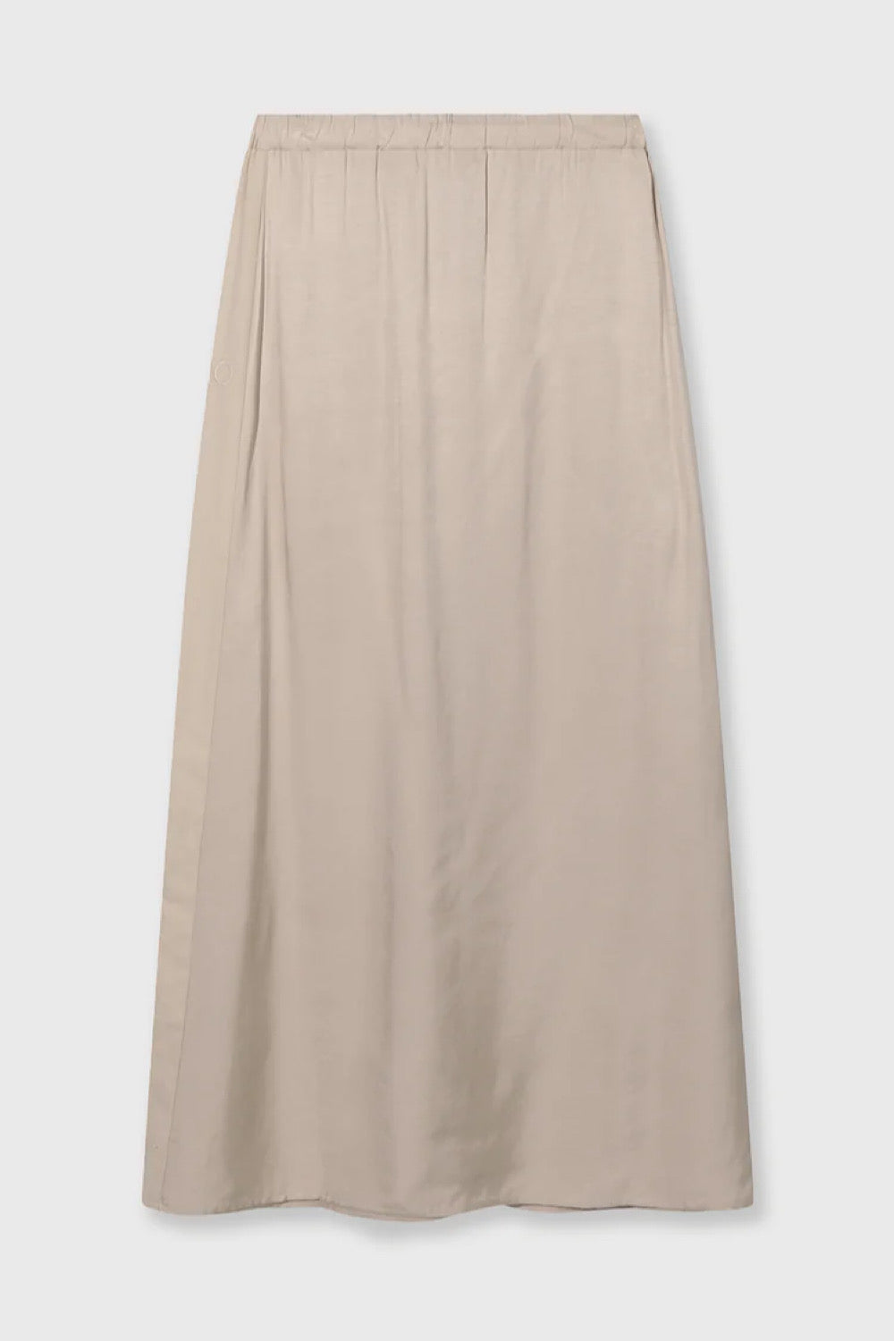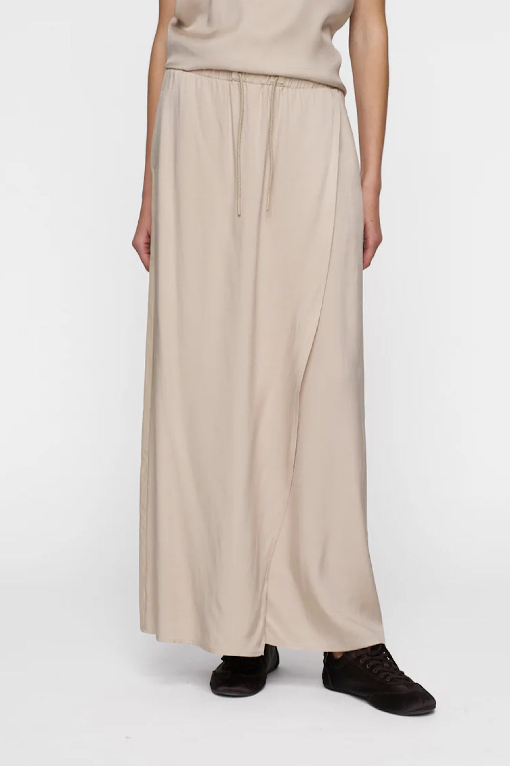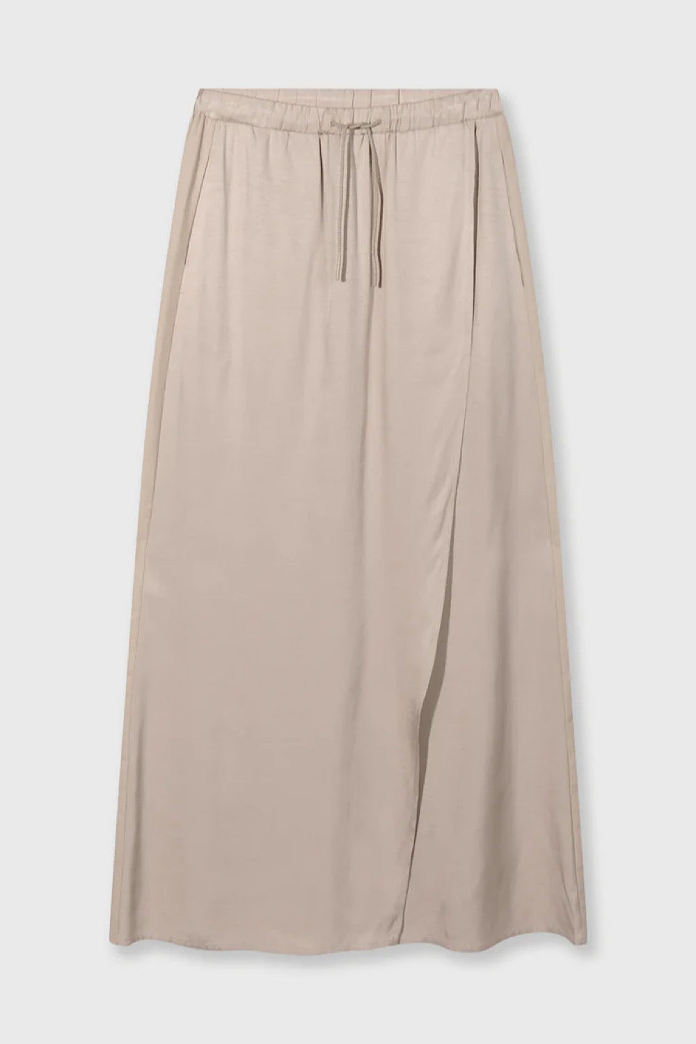 Falda con tejido satinado, goma en la cintura y efecto tipo wrap.