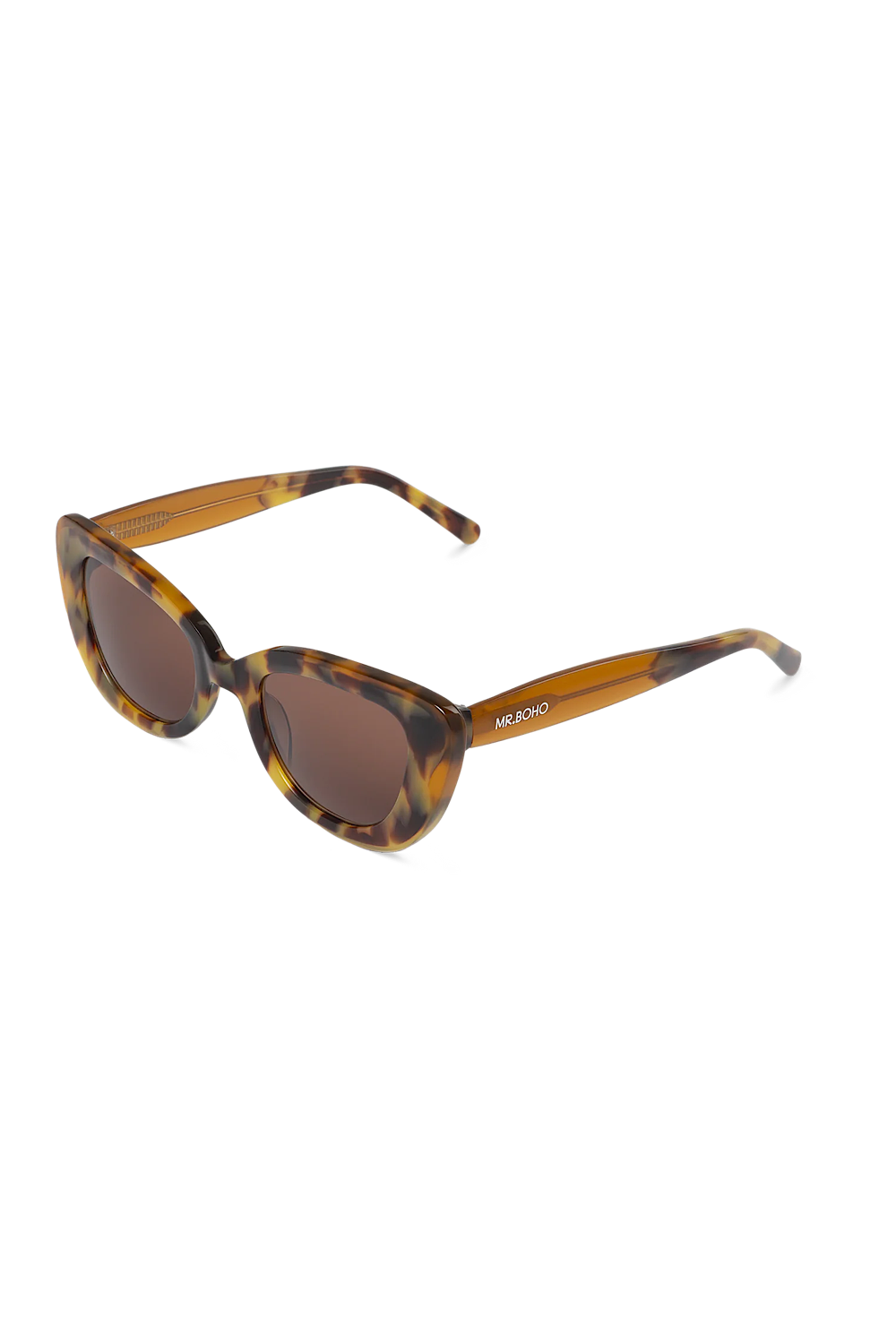 Las gafas de sol de Mr. Boho nos encantan. Sus diseños y combinaciones de colores son siempre muy tendencia. Además son muy cómodas, no pesan nada. Muchos de sus modelos son unisex. El modelo Caparica es un modelo que gusta siempre, tiene un toque cat eye redondeado que nos encanta, favorecedor y cómodo. También disponible en otros colores.