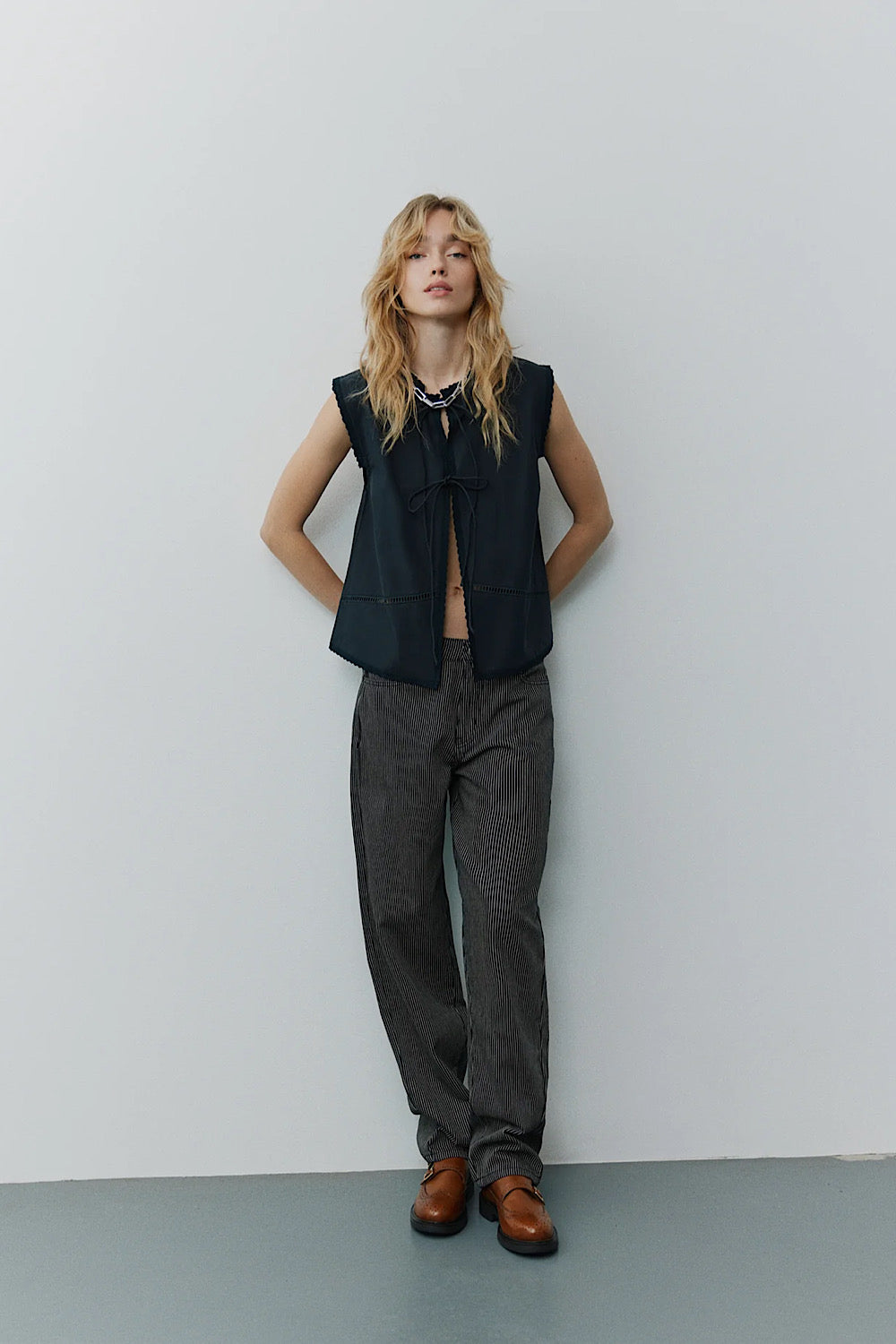 Vaqueros en gris oscuro con detalle de rayas. Una prenda con mucho rollo con la que crearás un look de jeans ideal.