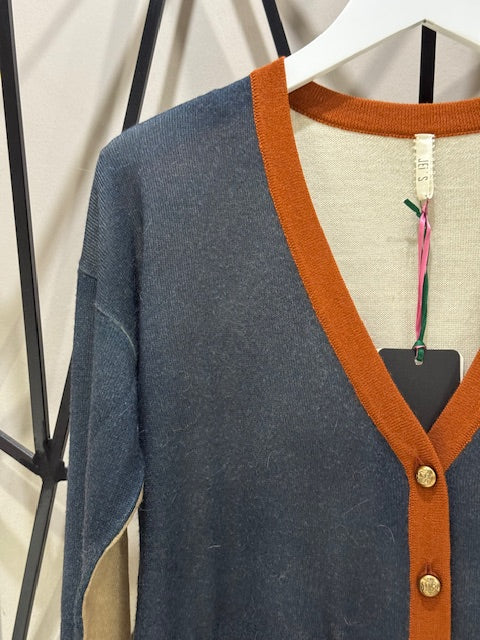 Una nueva marca de punto llega a Classy Privee, es muy especial y os va a encantar. Cárdigan corto en color denim desgastado a contraste con detalle en teja y la parte trasera en color arena. Si quieres un total look elige también los pantalones Celeste.