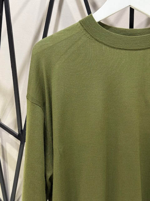 Una prenda de punto muy especial, con un tejido muy suave y confortable, cuello redondo y un color verde precioso y muy favorecedor.