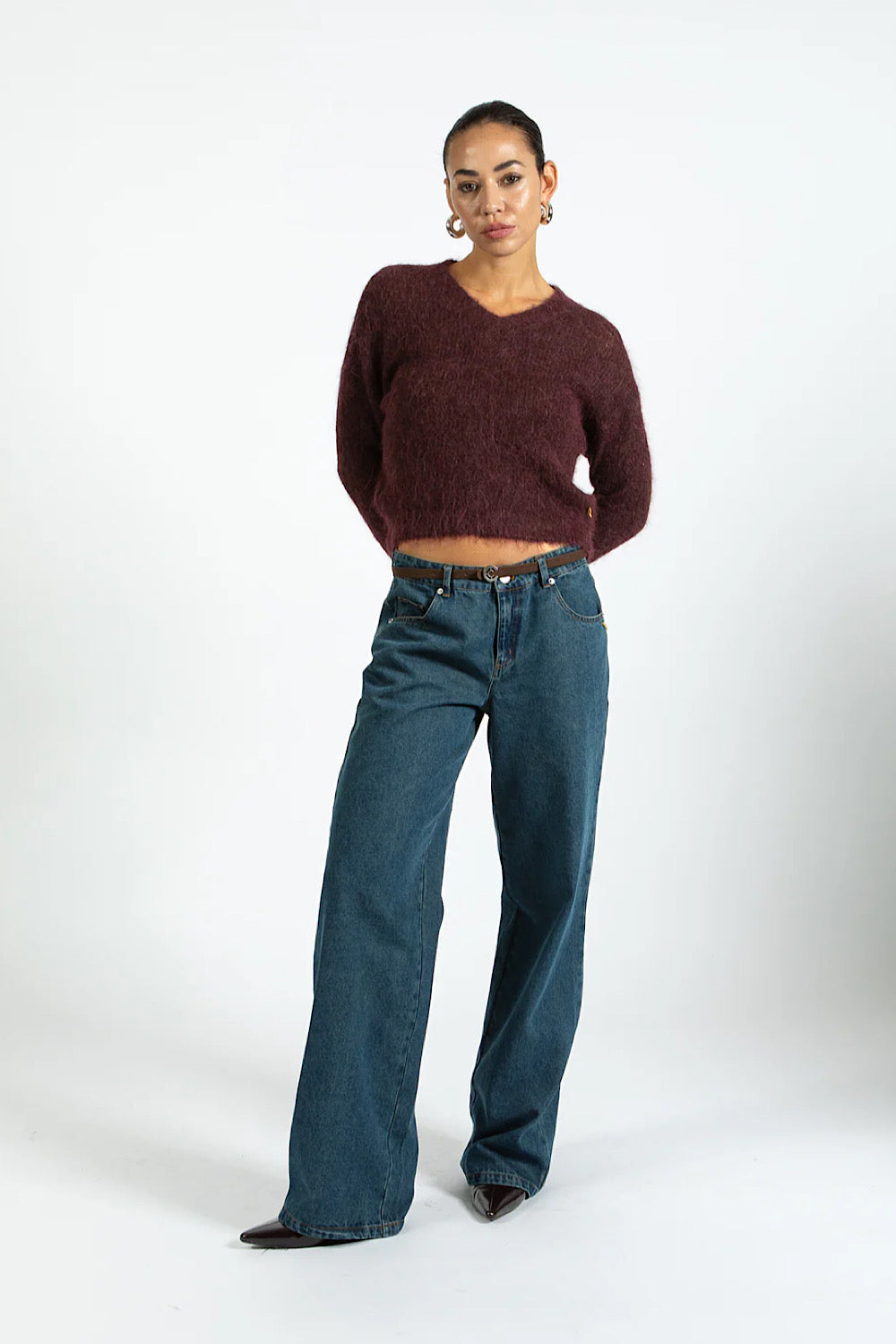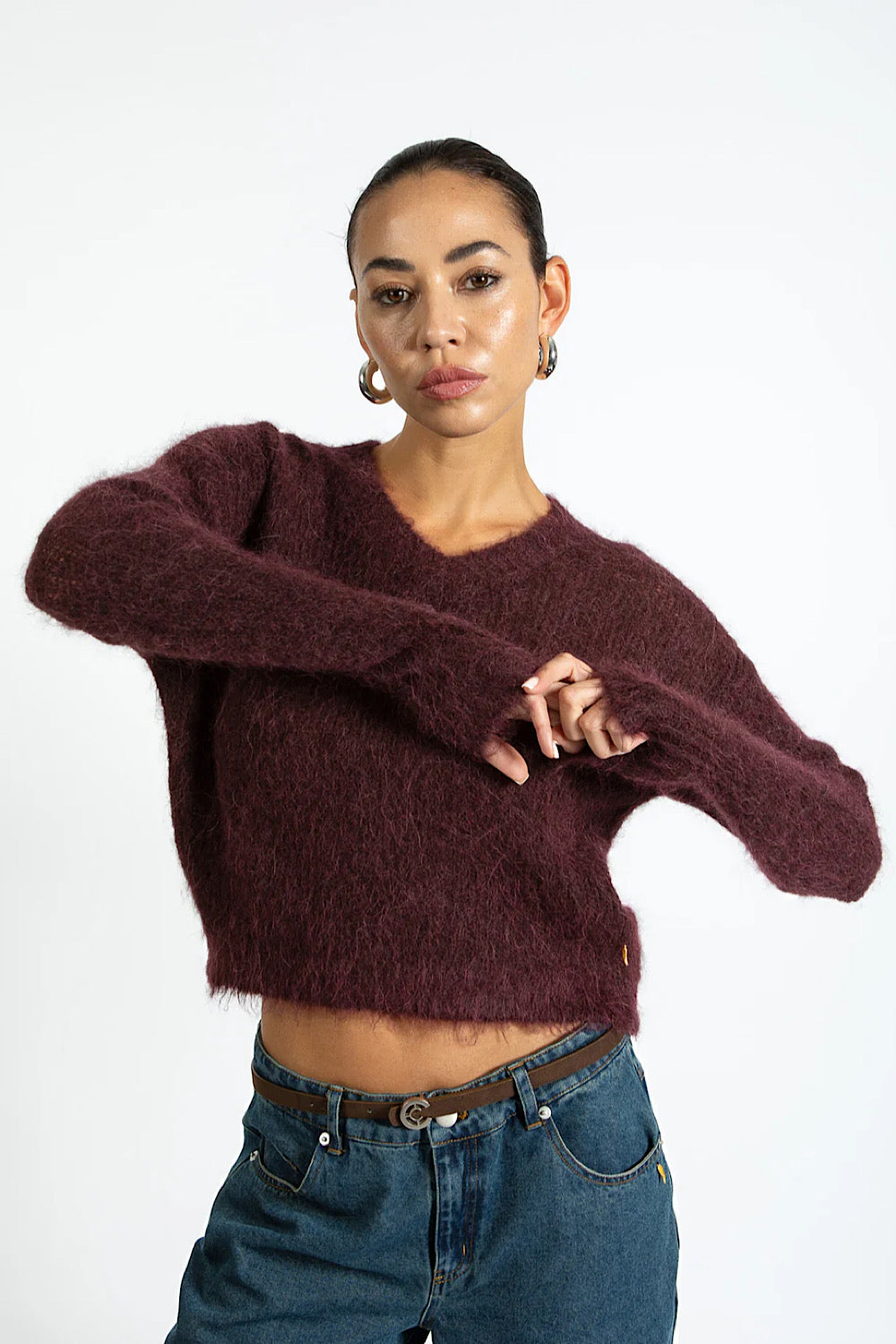 Jersey con escote de pico en un color burdeos precioso y muy en tendencia.