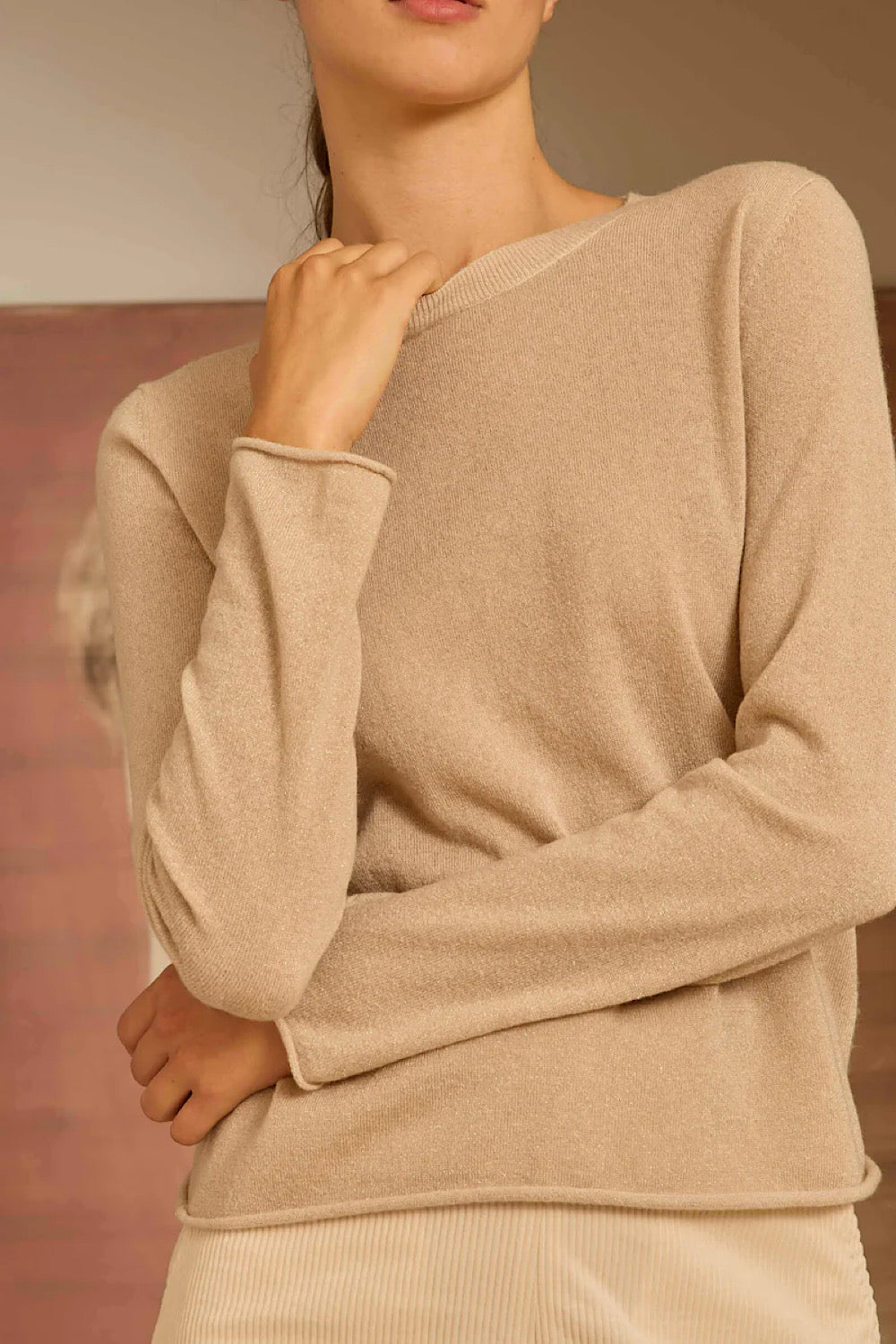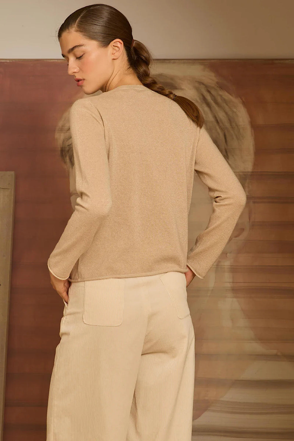 Jersey con cuello redondo en tejido de lúrex, un básico con un toque especial que necesitas en tu armario sí o sí.