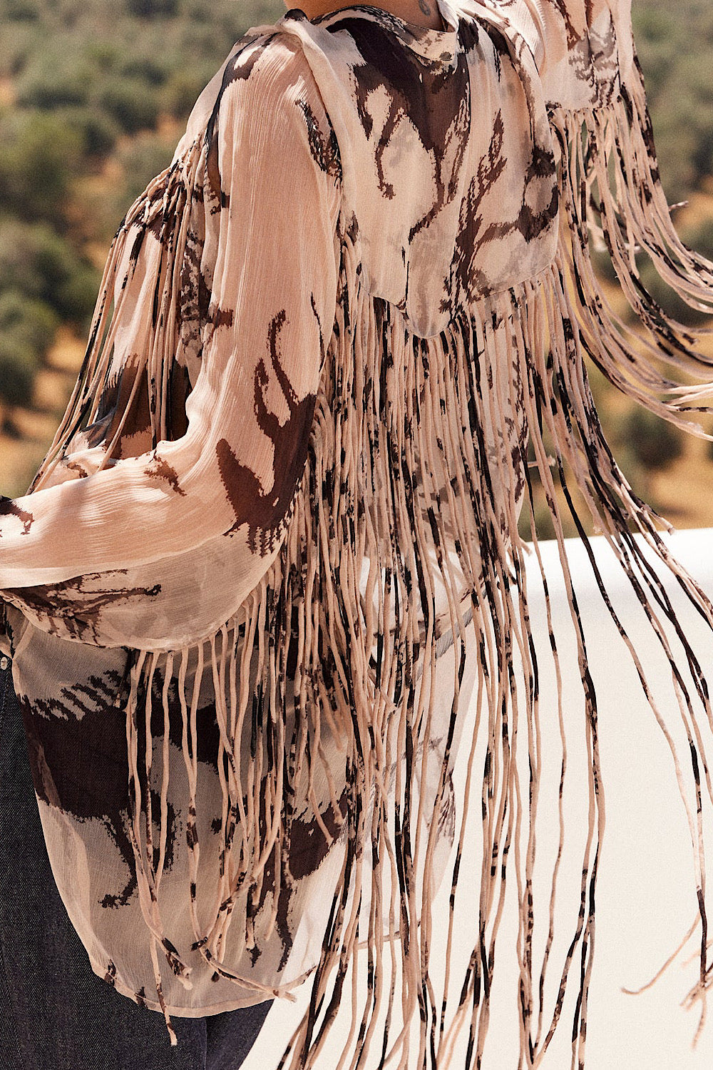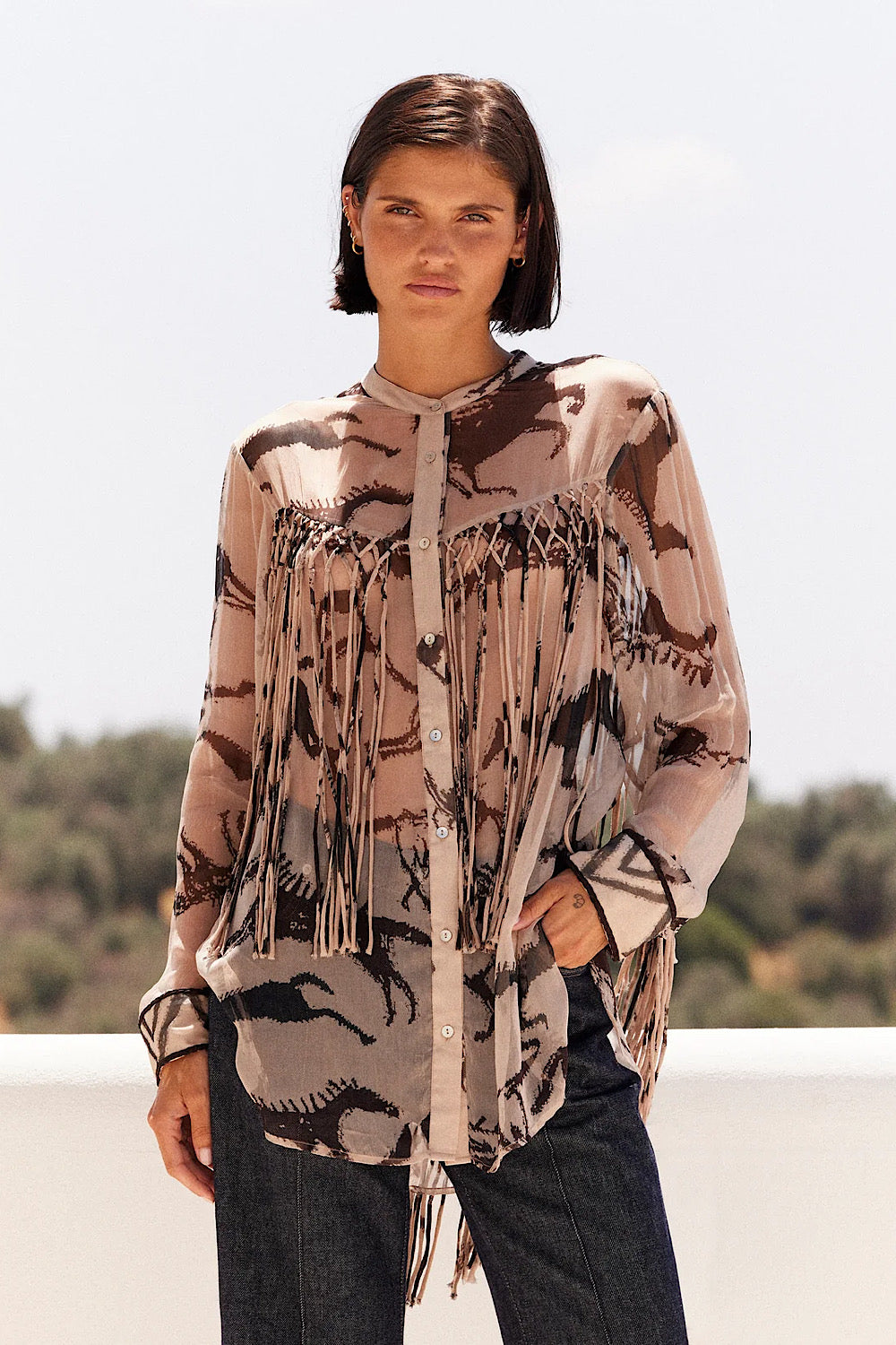 Maravillosa camisa de Mes Demoiselles con transparencias y detalle de flecos que le dan un estilo que nos encanta. Atrévete.