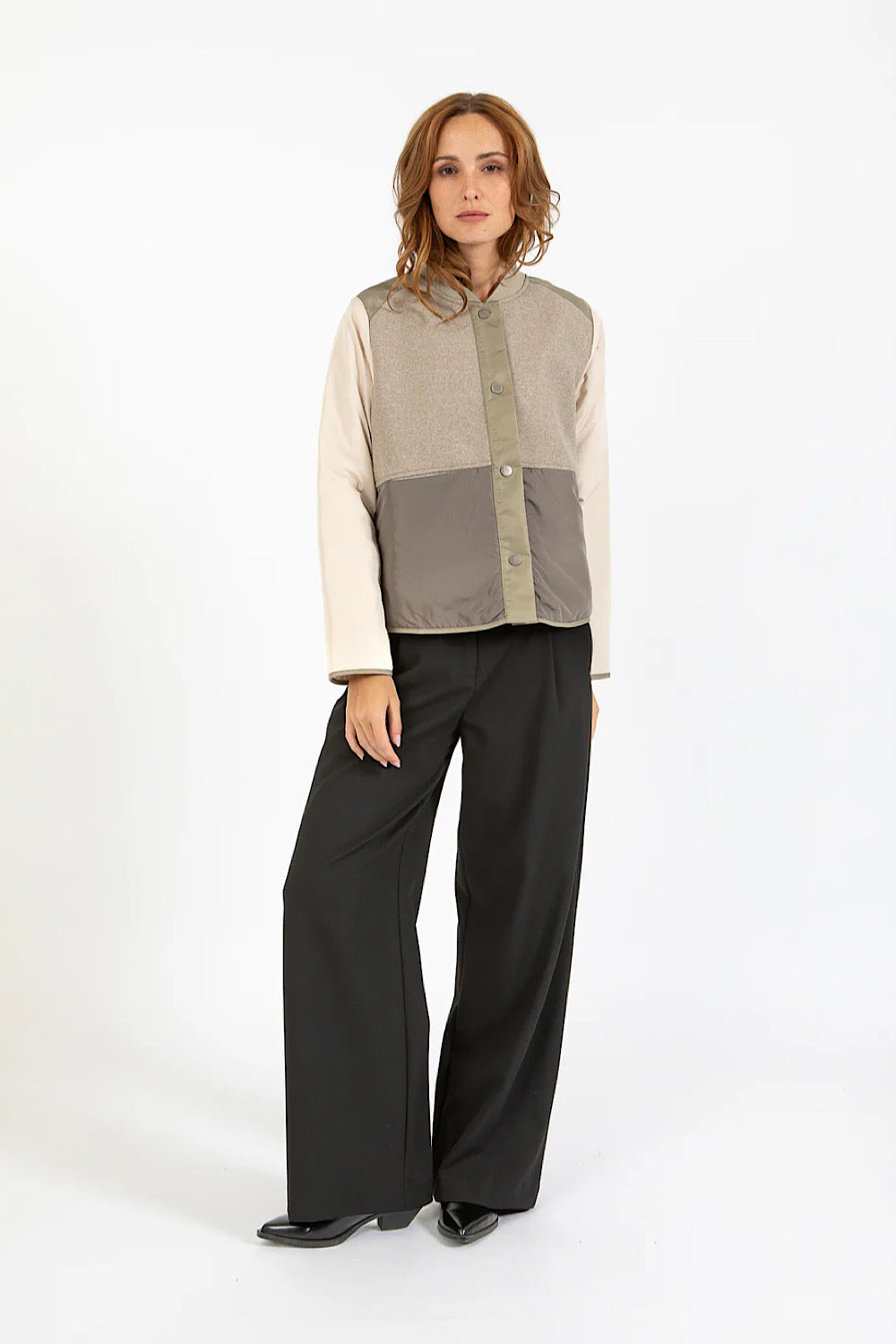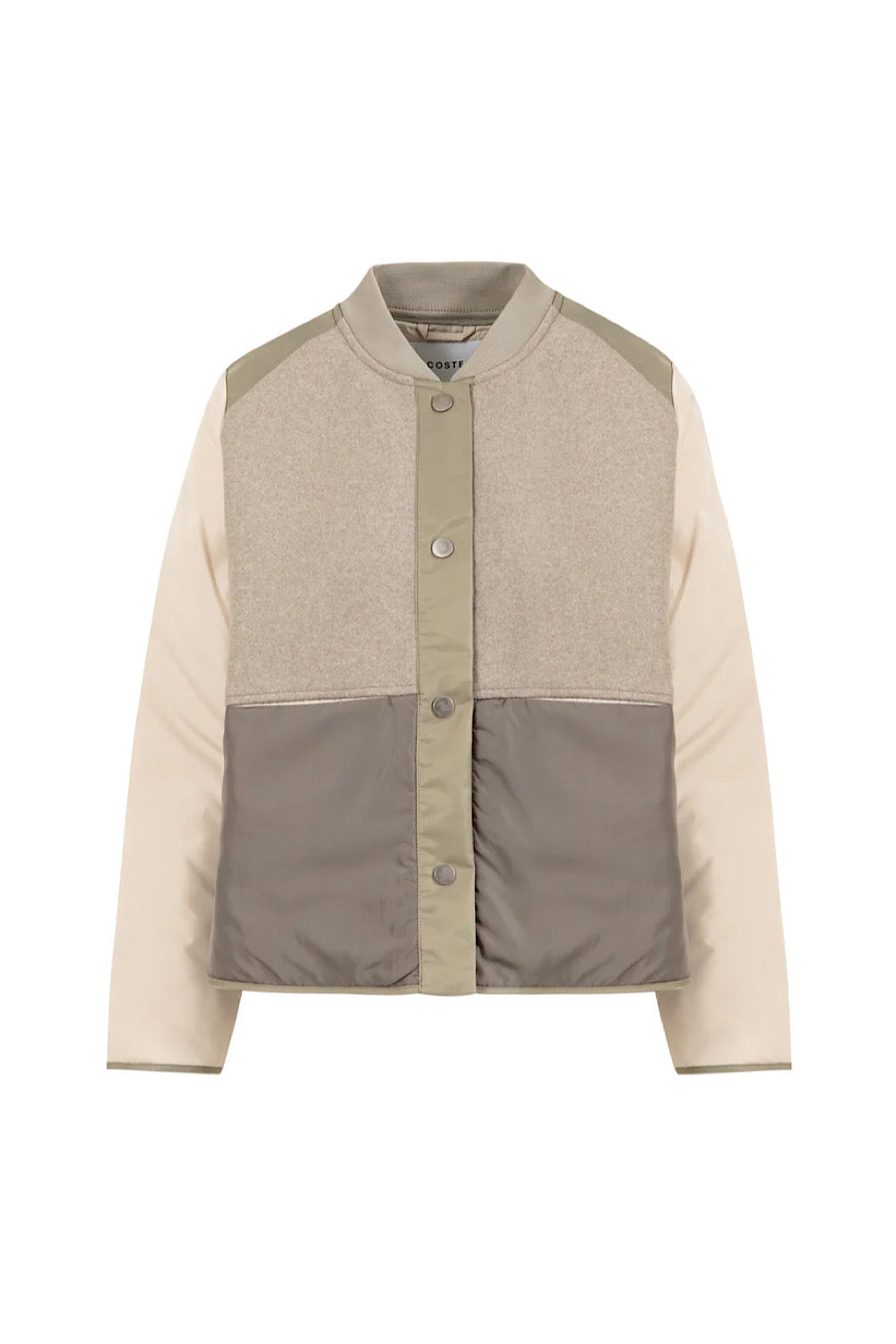 Chaqueta tipo baseball, muy en tendencia, ligera y cómoda. Perfecta para empezar la temporada. Mezcla de tejido acolchado y en la parte del pecho una parte que protege más del frío.