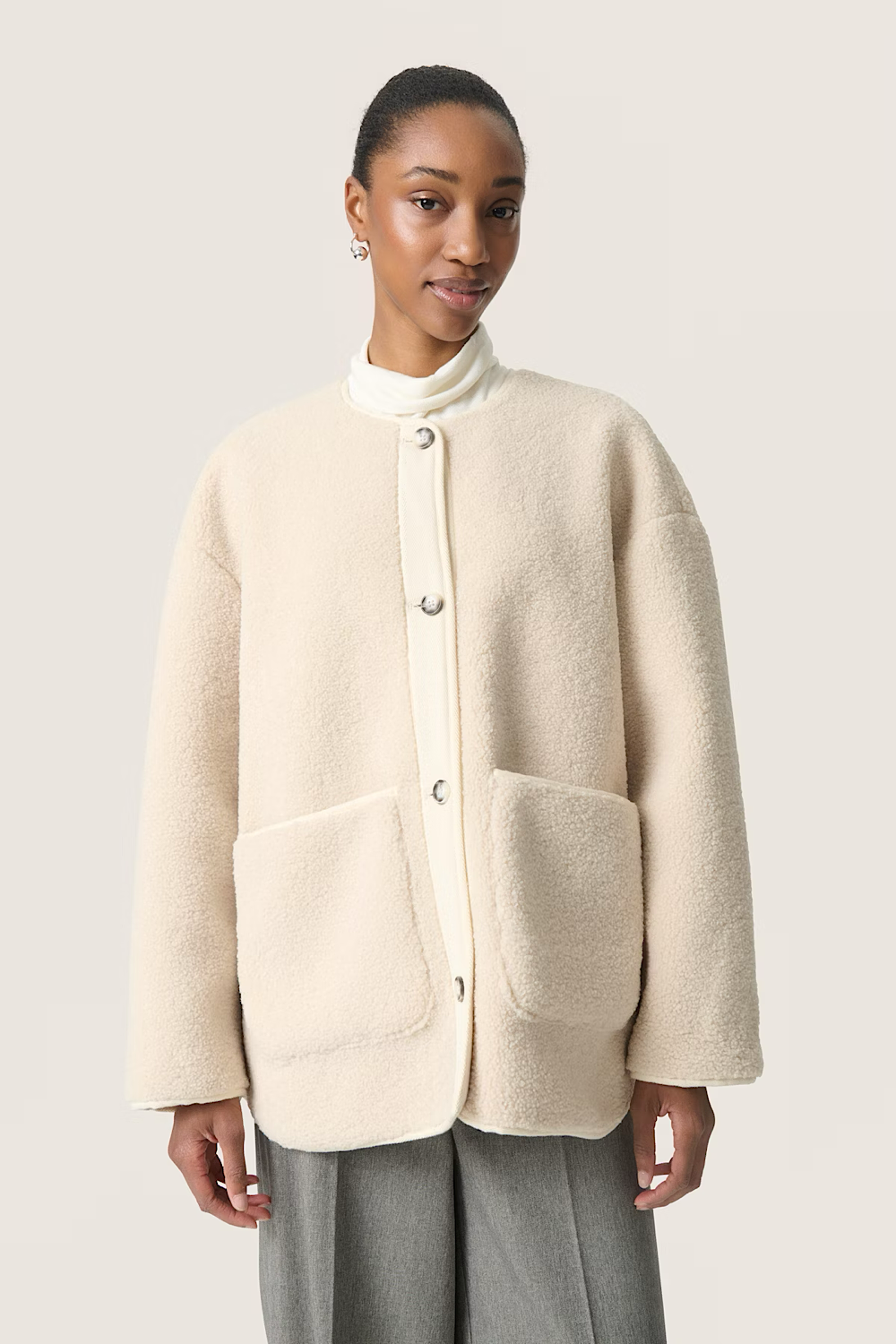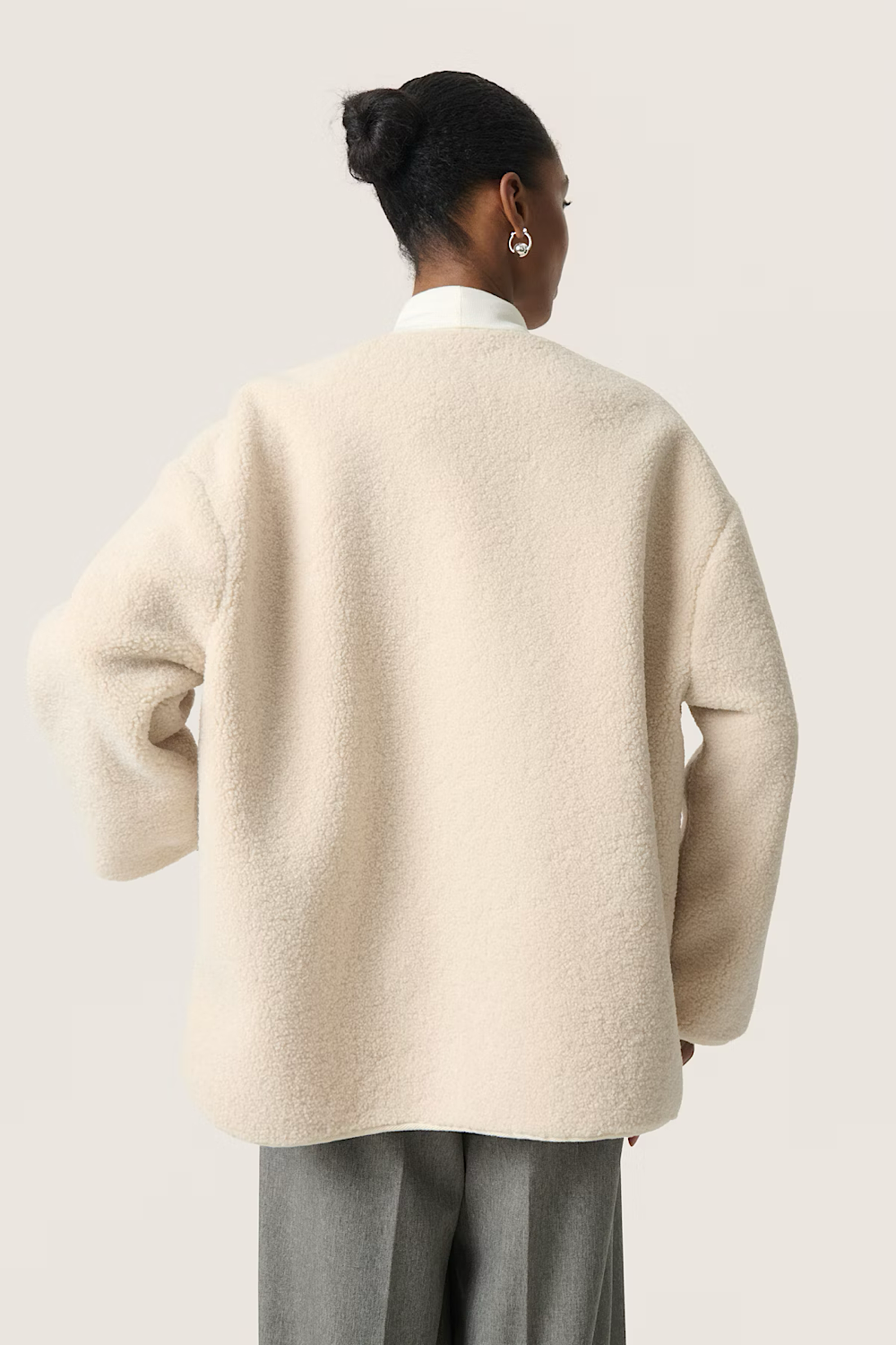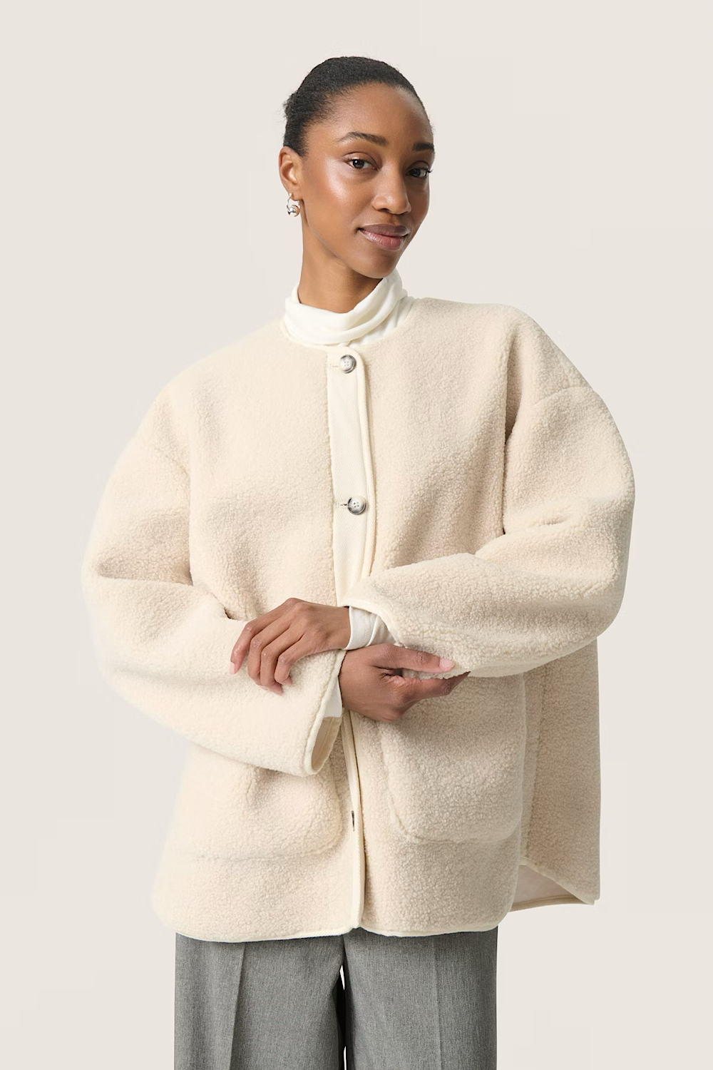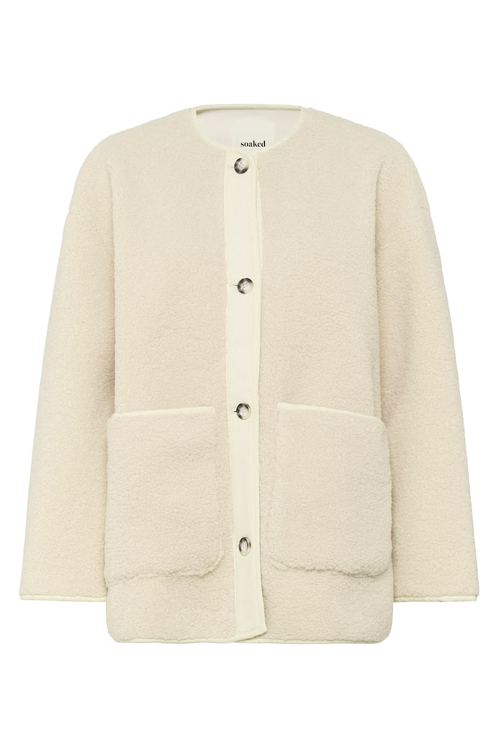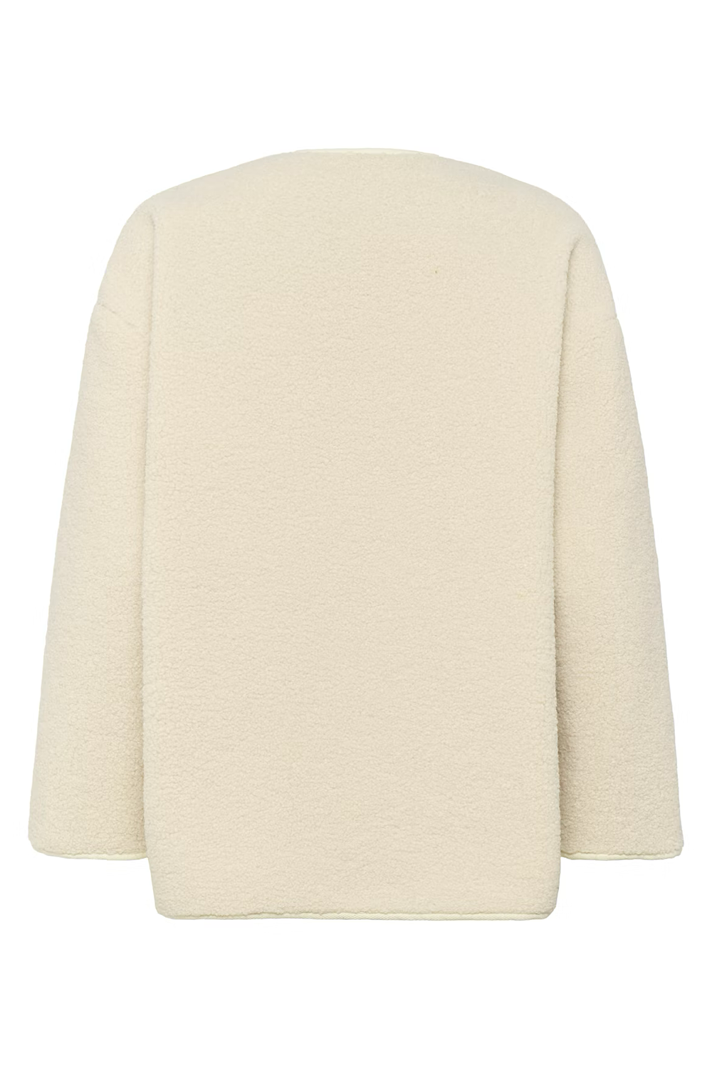 Chaqueta con tejido de borreguito y maxi bolsillos que nos encanta. En un tono crudo súper favorecedor para dar luz al invierno. Va directa a nuestras favoritas.