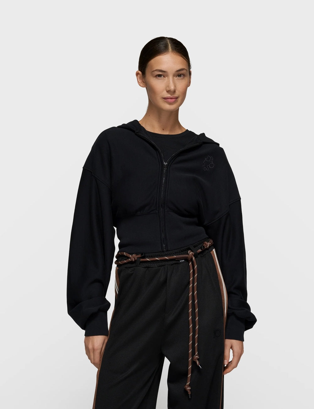 Chaqueta tipo sudadera con cremallera y capucha. Fit entallado al cuerpo tipo chaqueta de bailarina. Una prenda cómoda y con estilo para combinar con muchísimos looks.