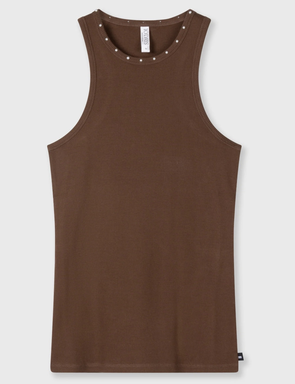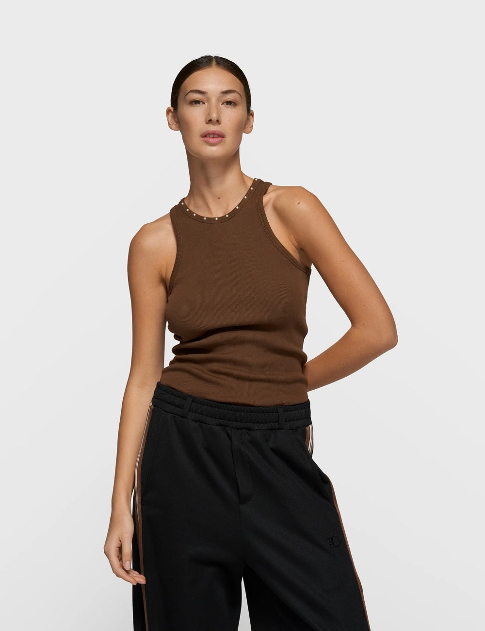 El clásico top tipo tank de 10Days pero con detalle de pequeñas perlas en la parte del escote que le dan un toque muy especial y es perfecto para looks más arreglados.