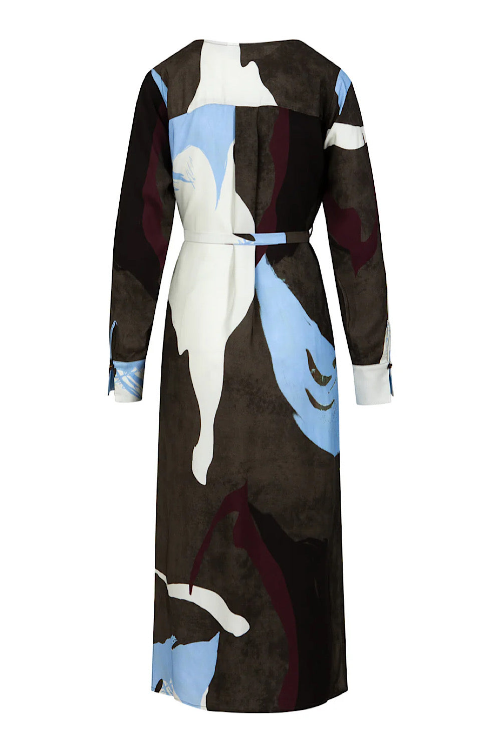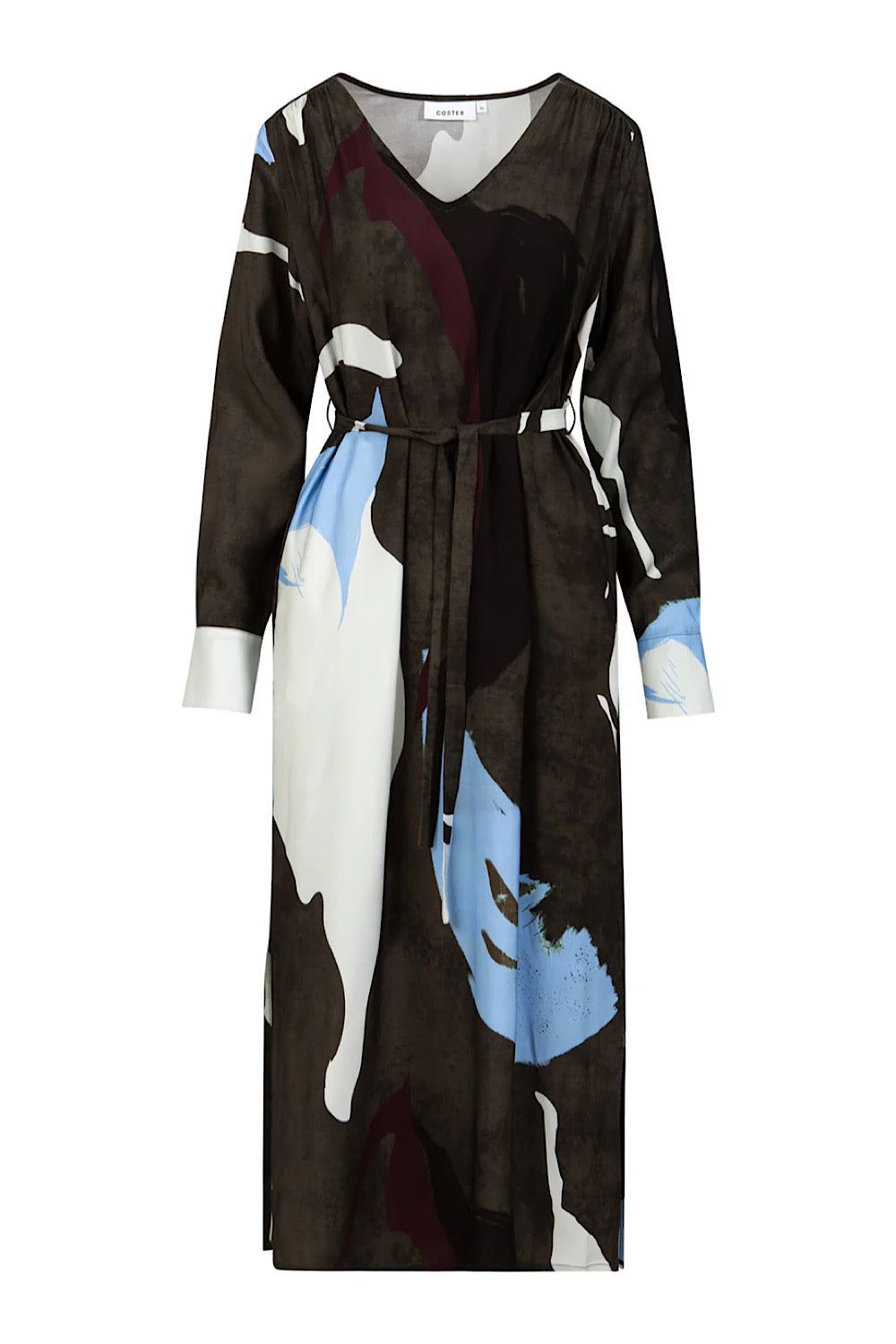 El tipo de vestido que siempre os encanta, con escote de pico, perfecto para llegar suelto o con el cinturón en el mismo tejido para ajustar a la cintura. Tiene una caída increíble y nos parece una prenda súper versátil.