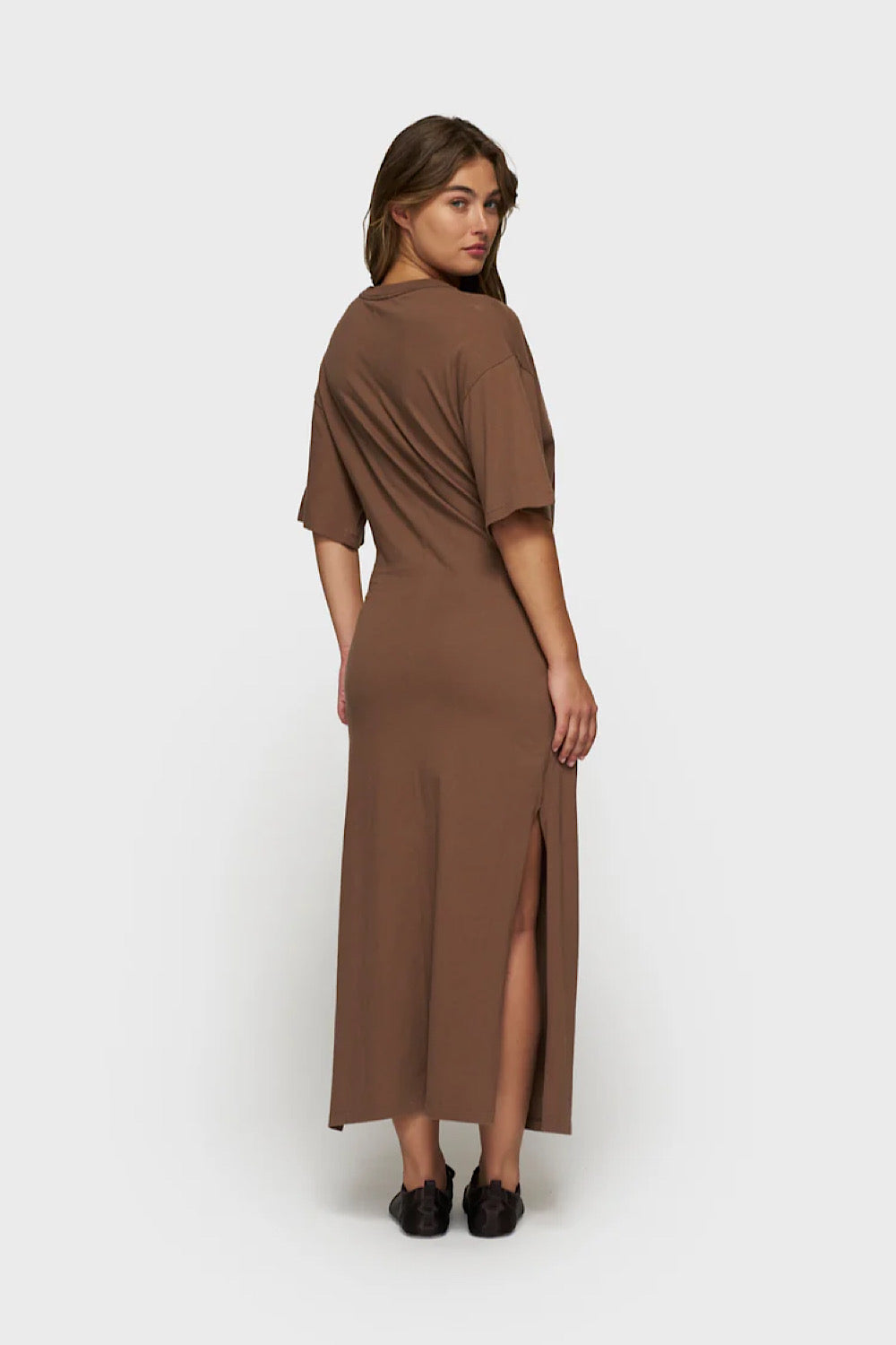 Los vestidos de 10Days de punto, tipo camiseta, siempre os encantan y este nuevo modelo con el drapeado en el lateral y un color marrón trufa súper tendencia os va a chiflar.