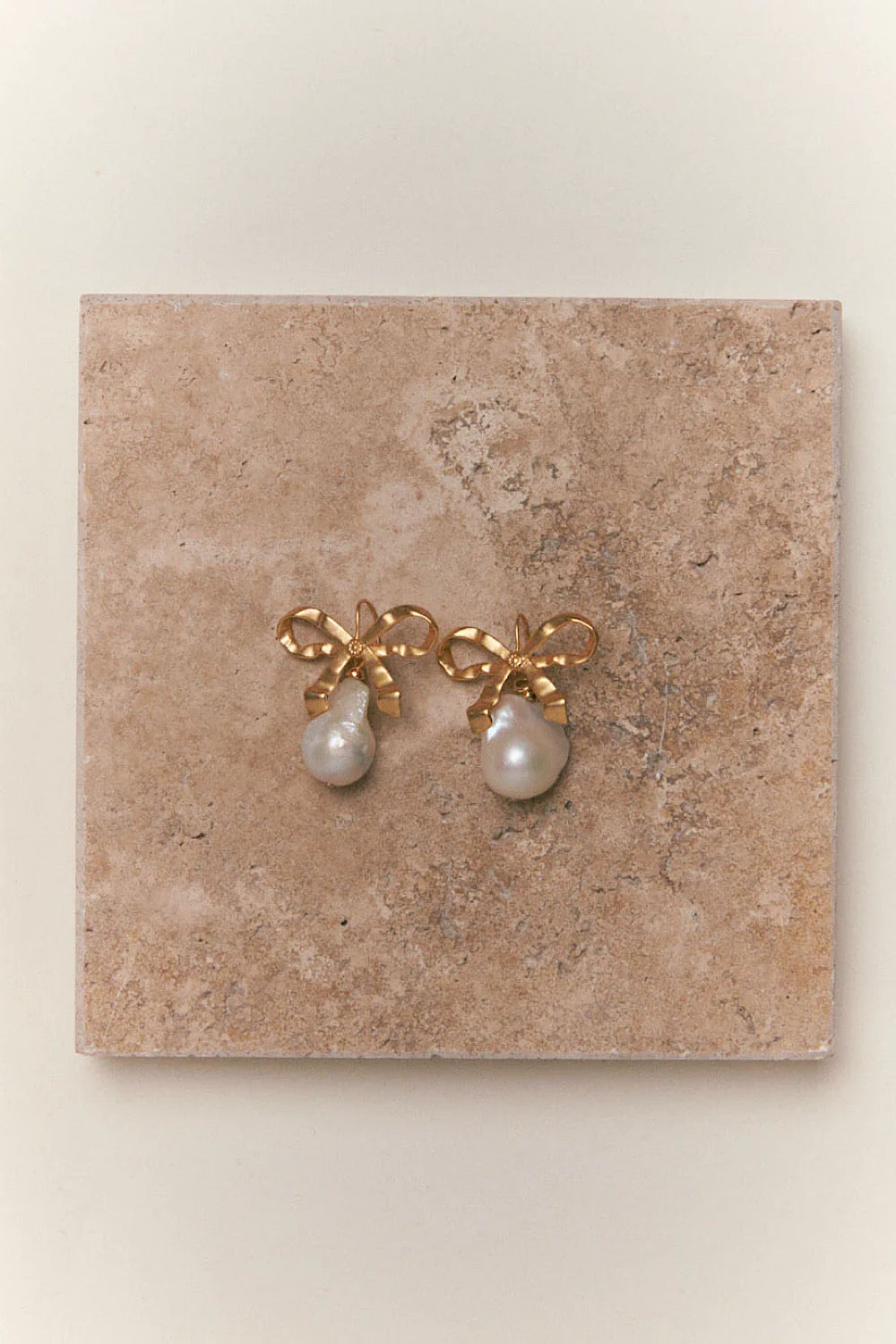 Inspirados en la joyería de la antigua Roma, los pendientes Flavia combinan la ligereza de una filigrana en forma de lazo con la pureza atemporal de una perla barroca. Este tipo de diseño fue especialmente popular entre la aristocracia durante el Siglo de Oro español, y aún hoy puede apreciarse en retratos de la época, donde destacan detalles similares.