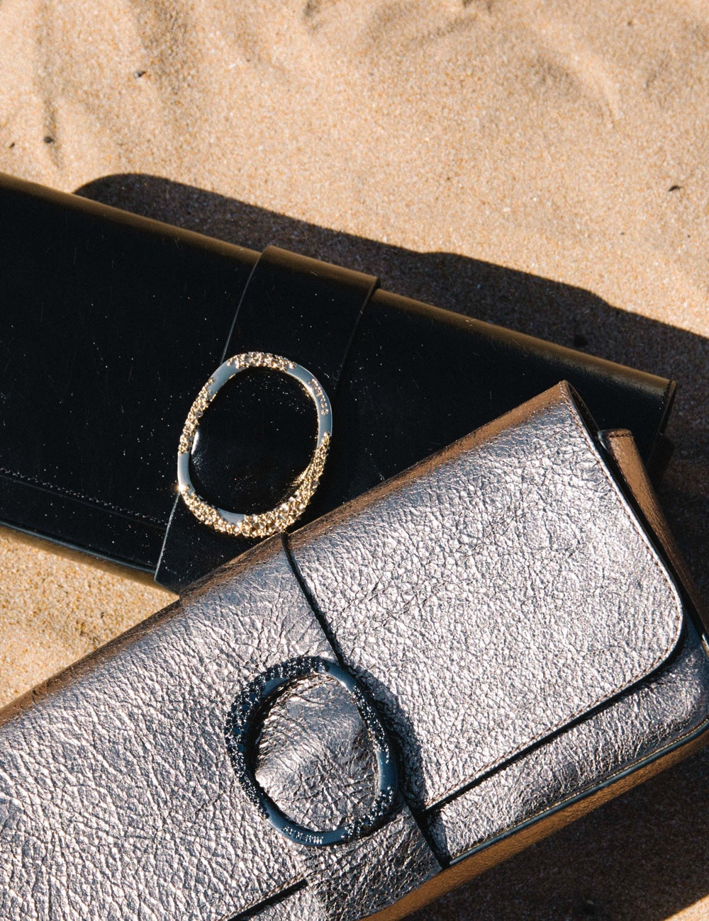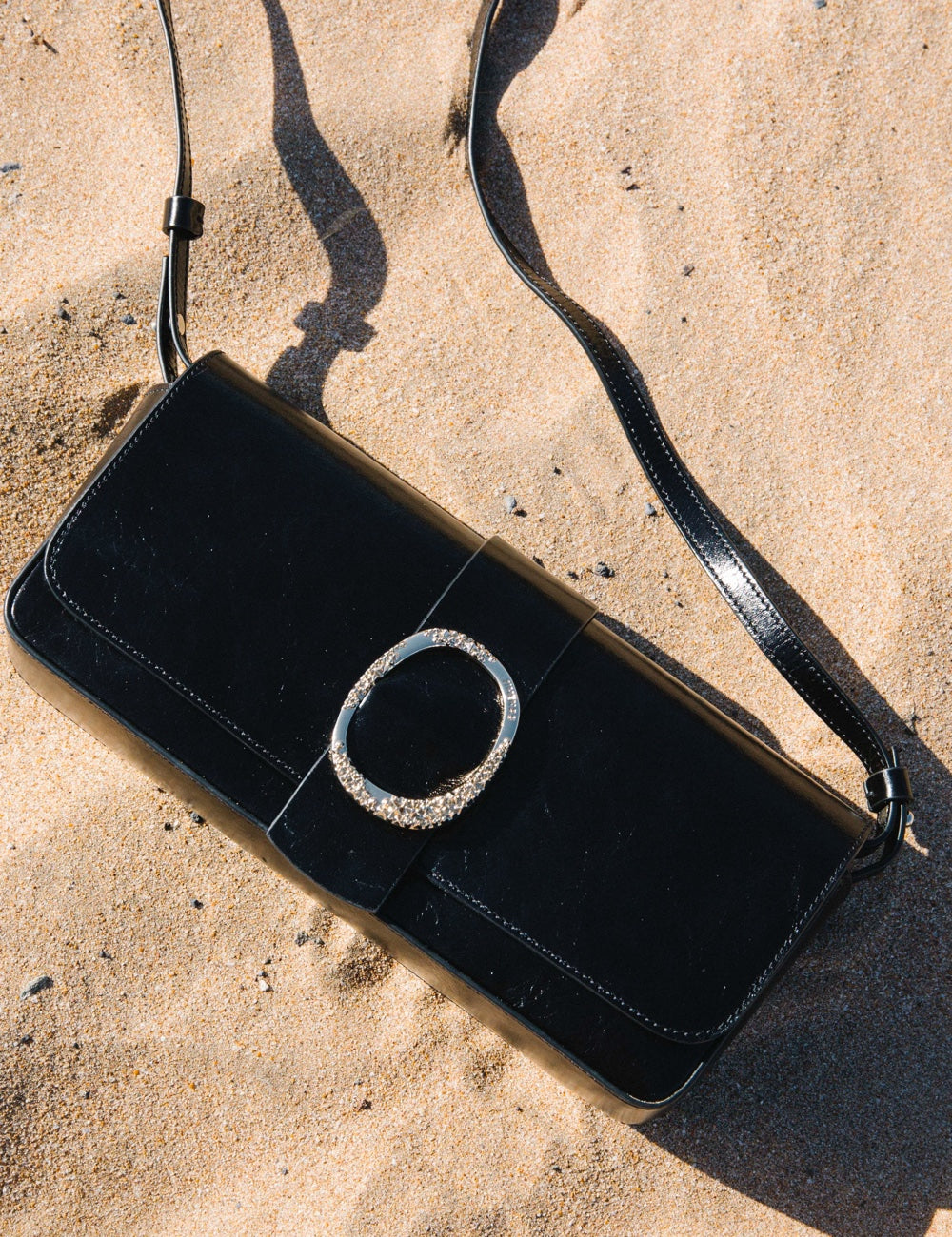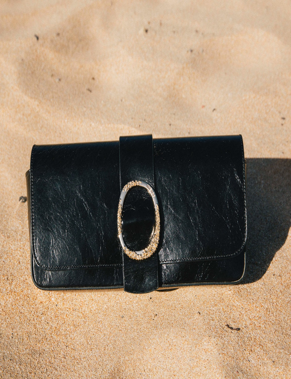 La Baguette Negro es una versión renovada de la icónica bandolera Jimena diseñada tanto para el día a día, como para eventos. Se puede llevar cruzado como bandolera, que se puede quitar y poner mediante chupetes o como bolso de mano.