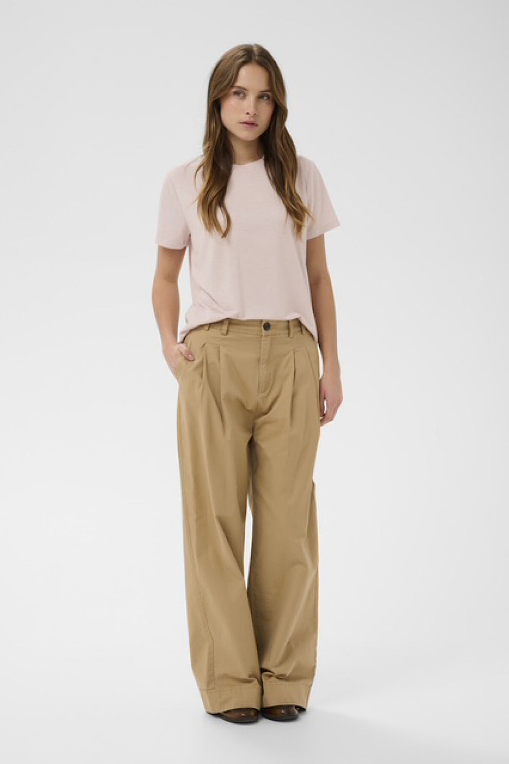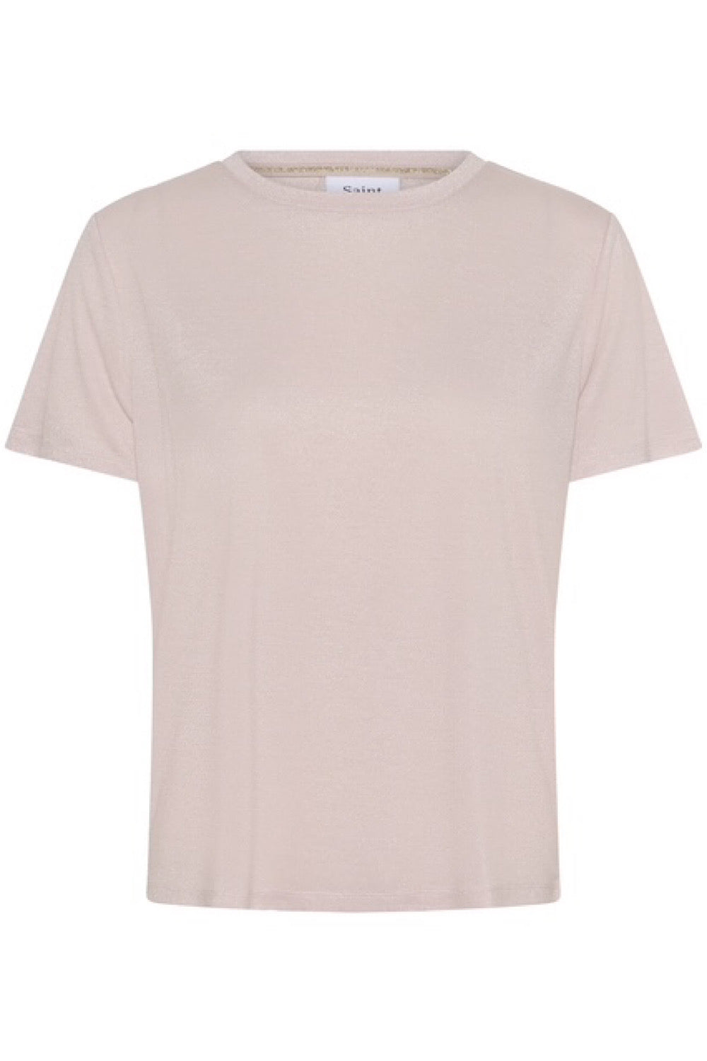 Una camiseta en tejido de lurex rosa, muy blandita y agradable. Nos encanta para darle a tu look de diario un toque de brillo sin que sea demasiado intenso. Combínala con tus jeans favoritos.