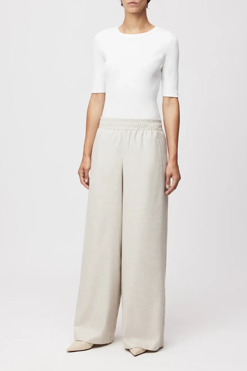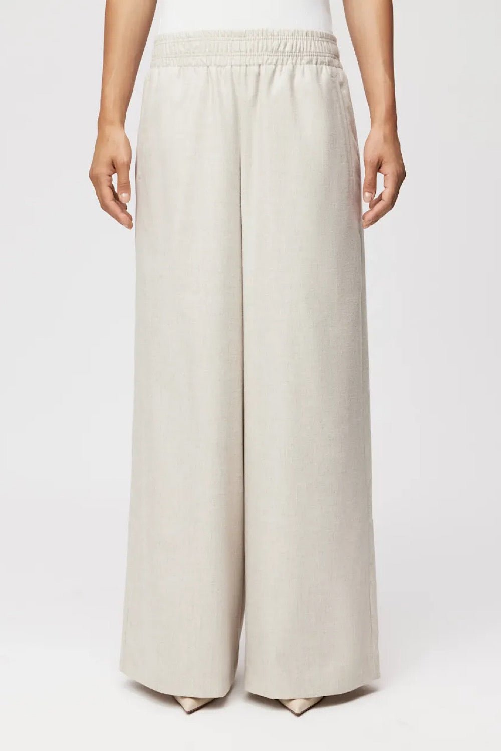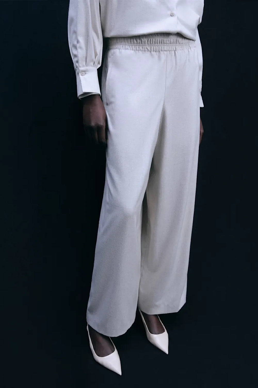Pantalones tipo palazzo con goma en la cintura con una caída y un tejido increíble. Súper versátil, le puedes dar el estilo que más te apetezca. Si quieres un total look elige la blusa Flanna a juego que también hace el efecto de chaqueta. No pasarás desapercibida con este look tan sofisticado.