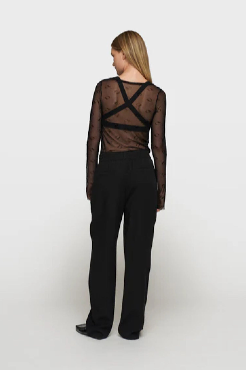 Top de gasa transparente con detalle de logo, para llevarlo así si te atreves o bajo otras prendas sin mangas tipo chalecos o camisetas de manga corta y que se vea el detalle de la transparencia con el logo.