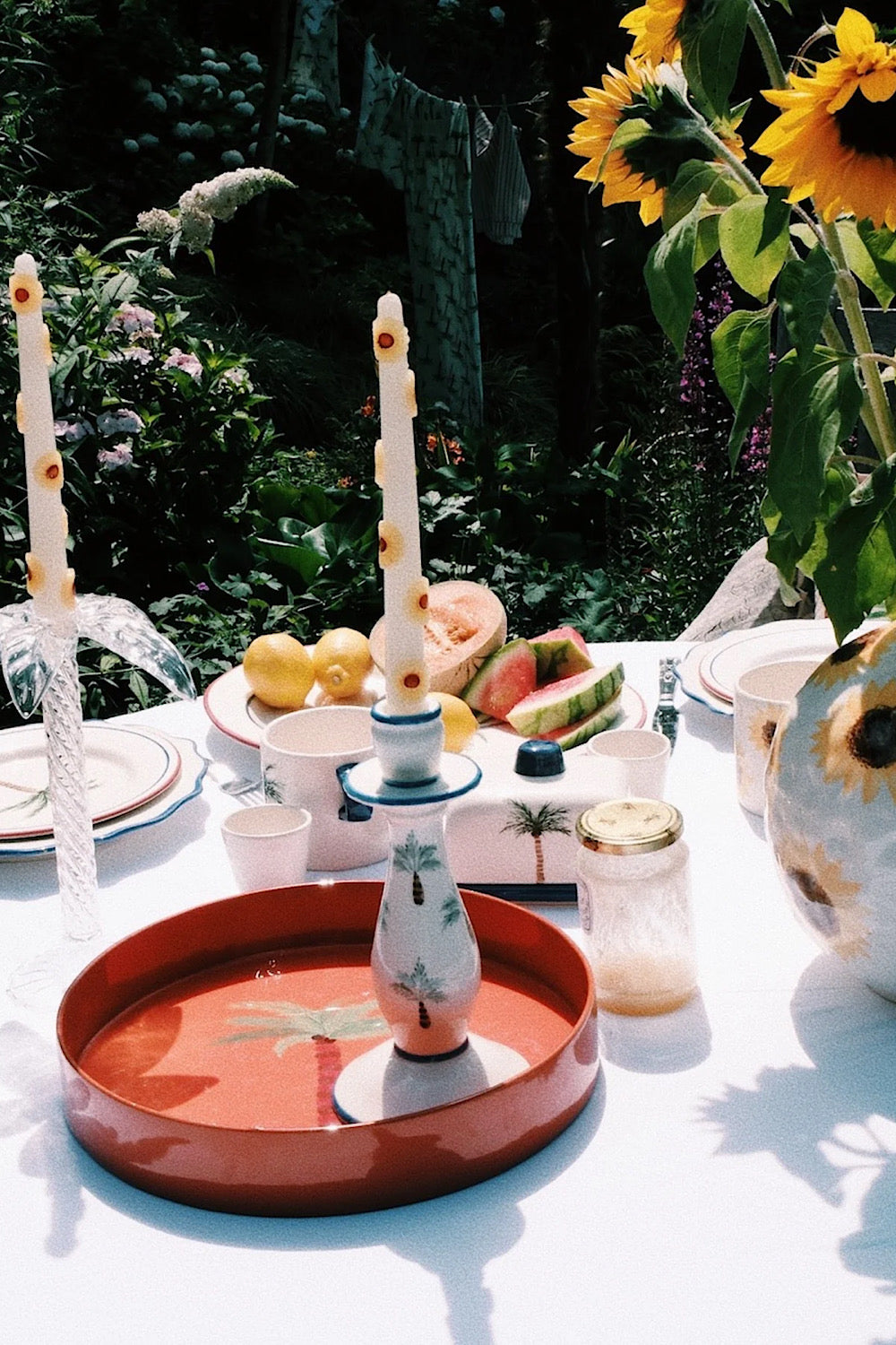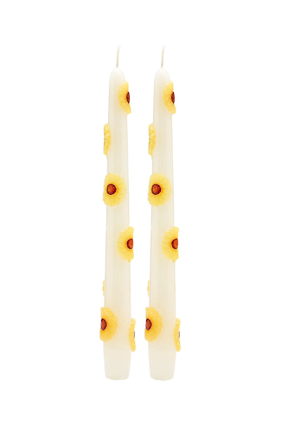 Set de 2 velas muy original y divertido, con el que vestirás tu mesa de manera muy especial. Detalle de girasoles en 3D.