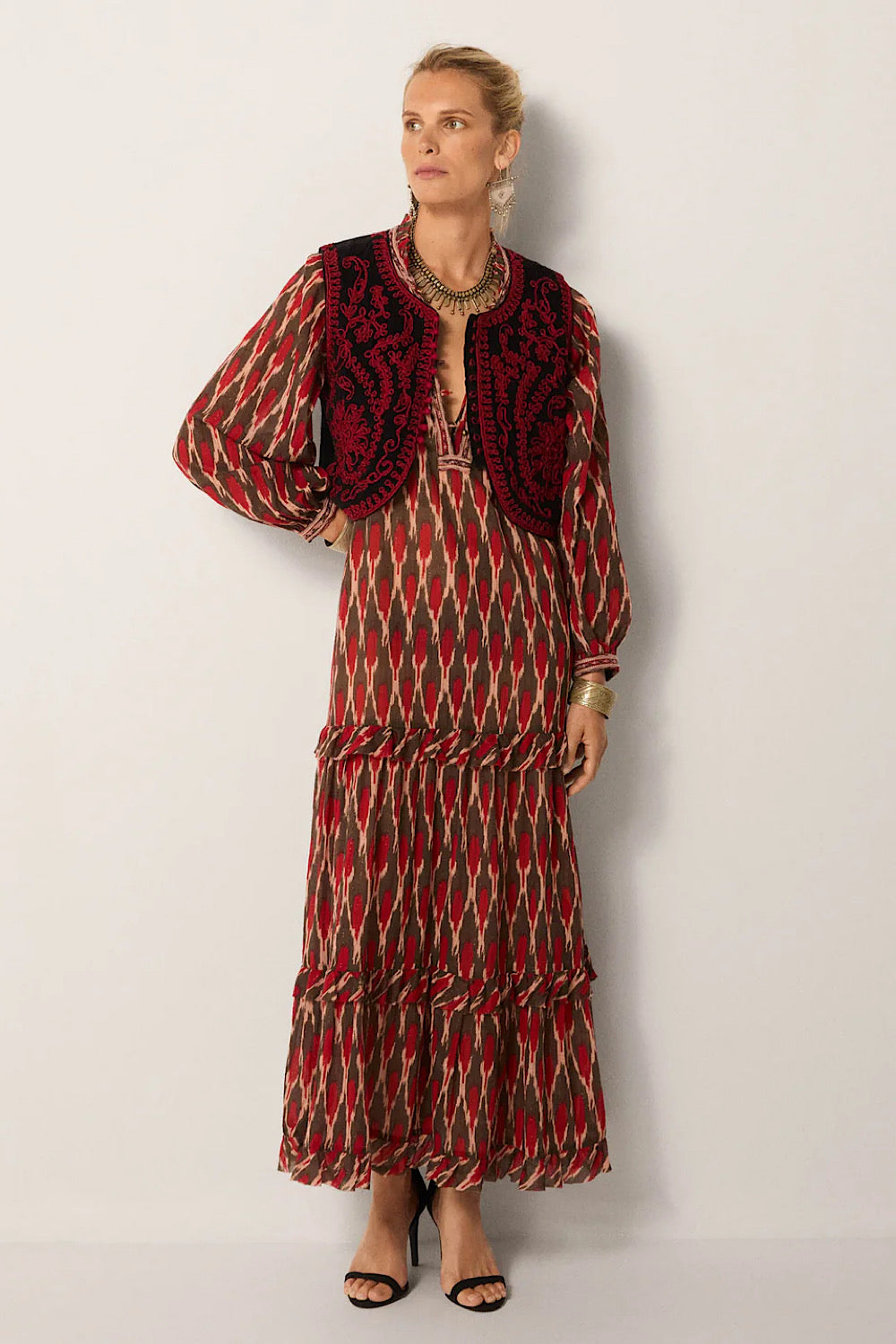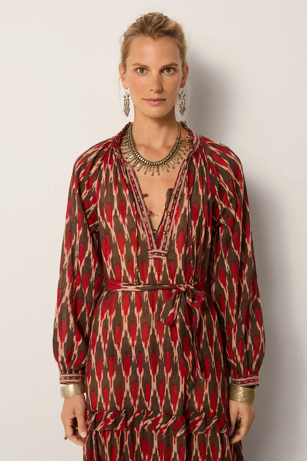Un vestido muy favorecedor y cómodo. En tejido de algodón con detalle de hilos de lúrex que le dan un toque muy especial. Si quieres un total look elige también la chaqueta Volcano a juego, nos encanta.