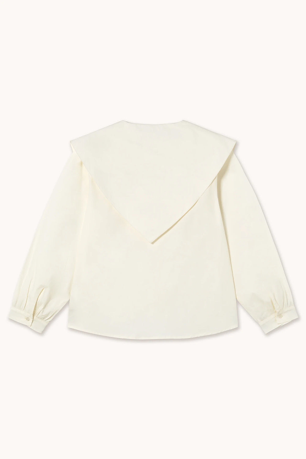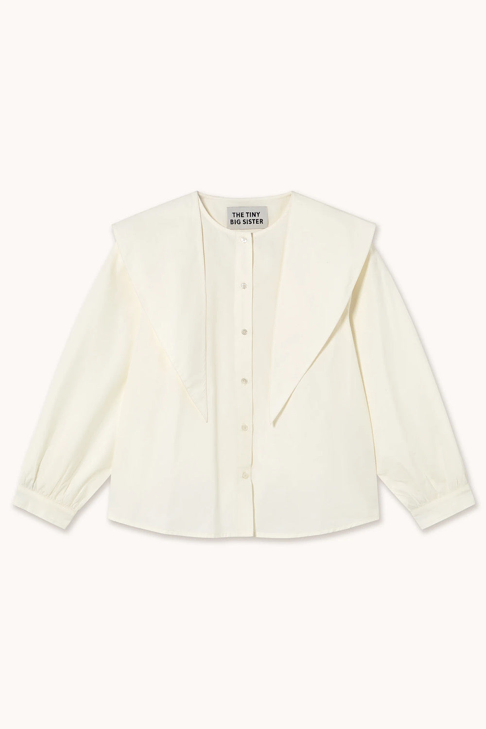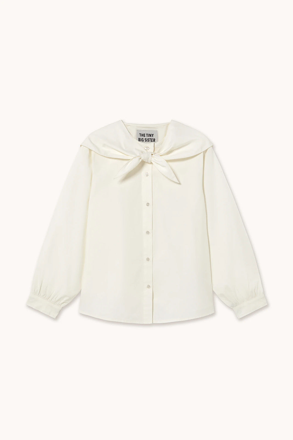 Una reinterpretación moderna de un clásico, esta camisa blanca está confeccionada en popelina de algodón con tacto papel y cuenta con un cuello tipo pañuelo integrado que permite diferentes formas de uso. El diseño de líneas rectas aporta una estética limpia y contemporánea.