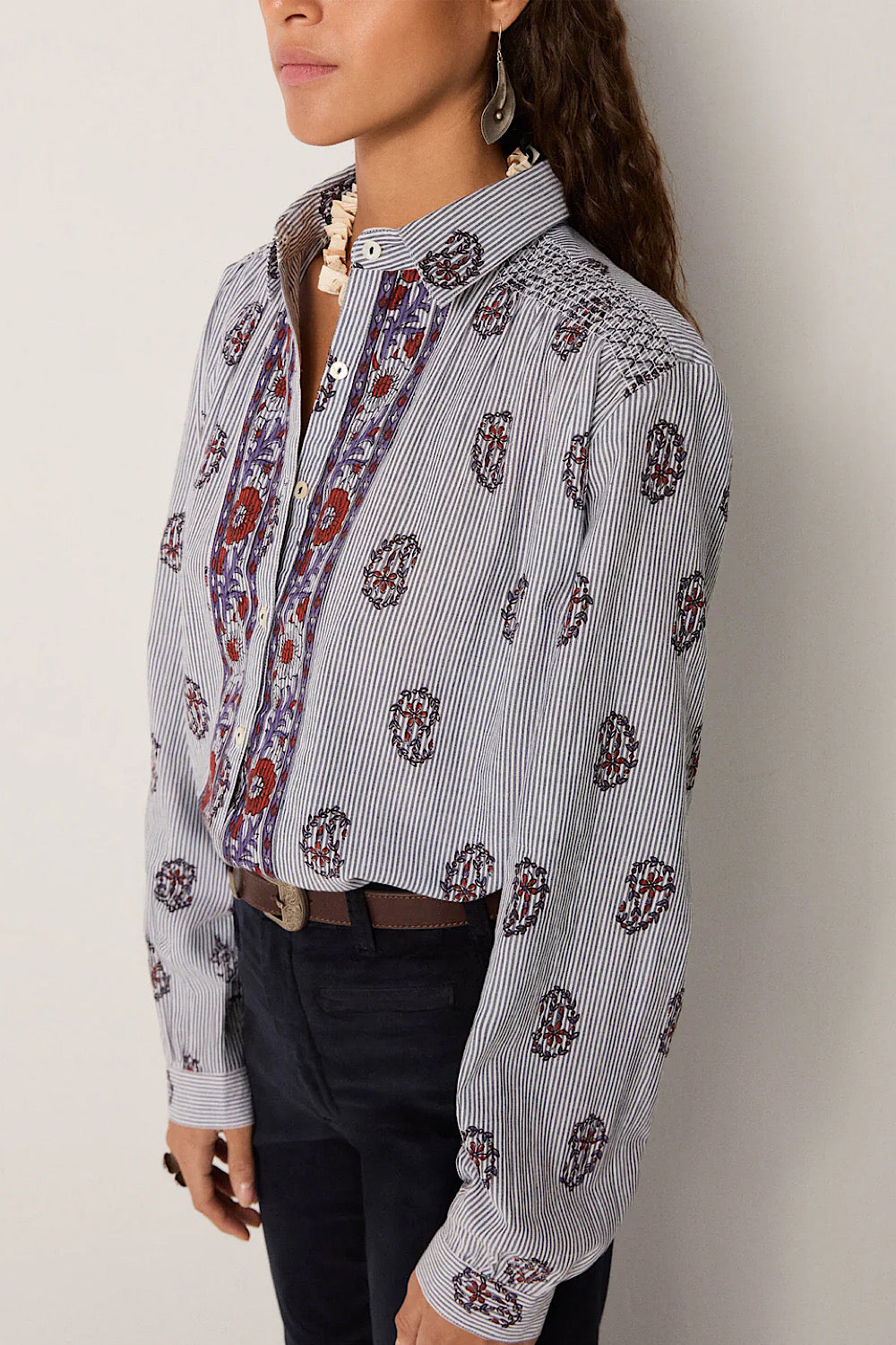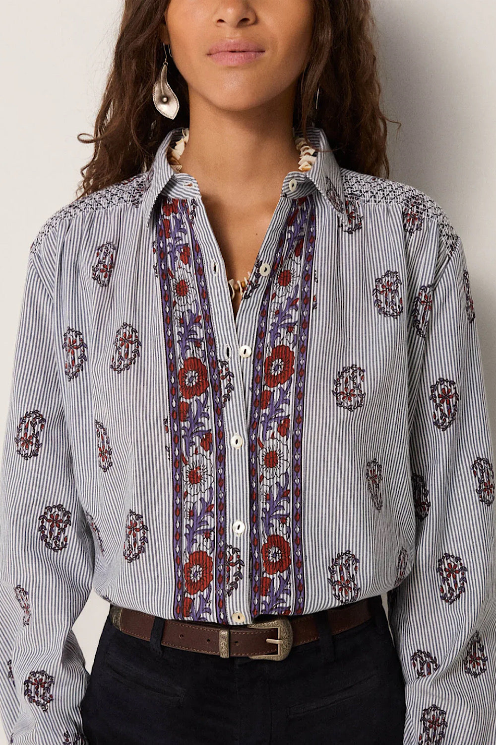 Las camisas de Maison Hotel siempre son de vuestras favoritas y este modelo de algodón es siempre best seller, con detalle de rayas y flores estampadas. Nos encanta.