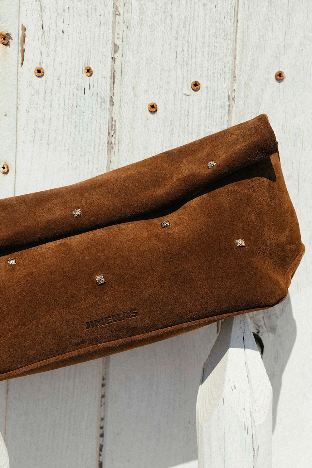 El modelo Boom Boom Serraje Cognac se incorpora este invierno a la familia de bolsos de Jimenas como una propuesta muy diferente. Se trata de un bolso tipo Lunchbag 2 en 1. Se puede llevar bajo el brazo y como bandolera, que se puede quitar y poner mediante chupetes.