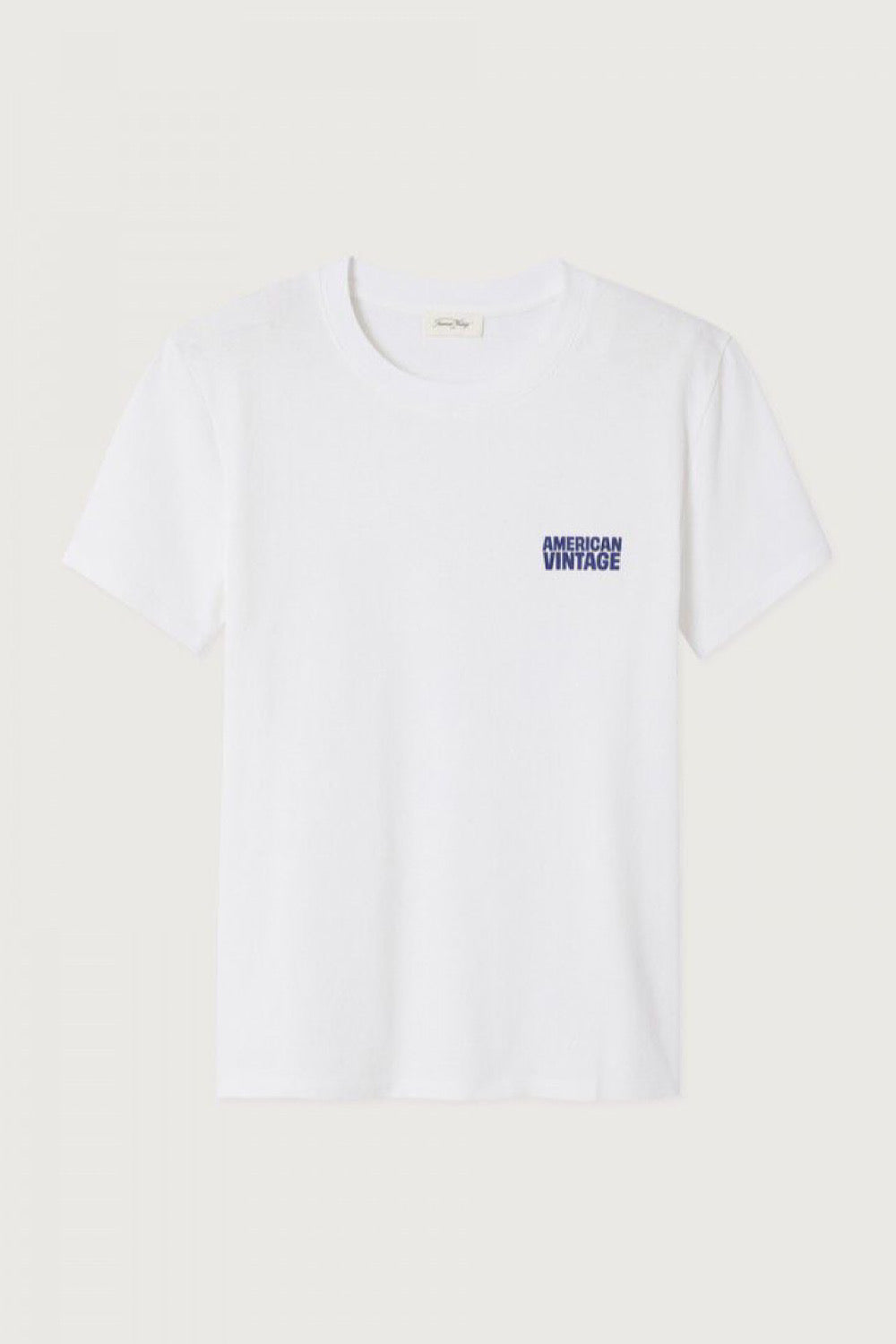 Camiseta blanca de algodón con cuello redondo y manga corta. Presenta un pequeño logo bordado en el pecho en contraste azul, que aporta un toque sutil de estilo. Su corte clásico y tejido suave la convierten en un básico imprescindible, perfecto para combinar con vaqueros.
